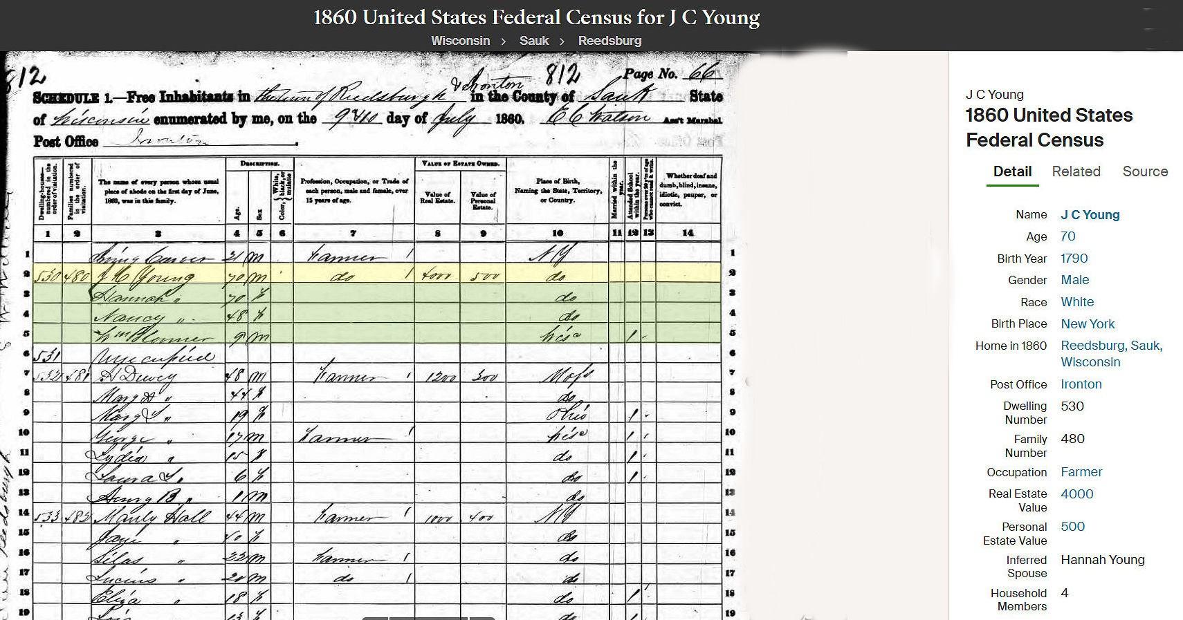 Young 1790 1878 Corrections to this information: Residence Place: Reedsburg Sauk County Pension Place: Sauk, Wisconsin, USA