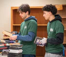 9: Pedro Rodrigues (left), freshman nursing major, and Julian Mancebo, freshman accounting major, sort through books as part of library renovations at the AIM Center, a nonprofit offering community for adults with mental illness.