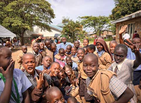 Left: Fellow Southern student missionary Michaela Lohr (center) bonds with students at Nyaburi Integrated Primary School.