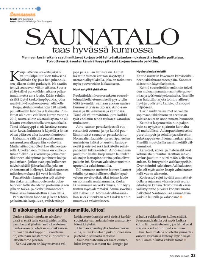 Sauna-lehti verkossa: www sauna fi/sauna-lehti