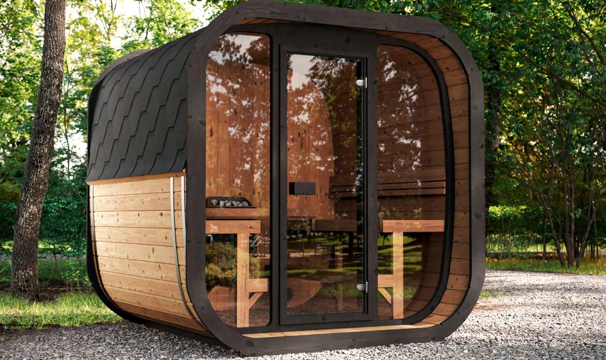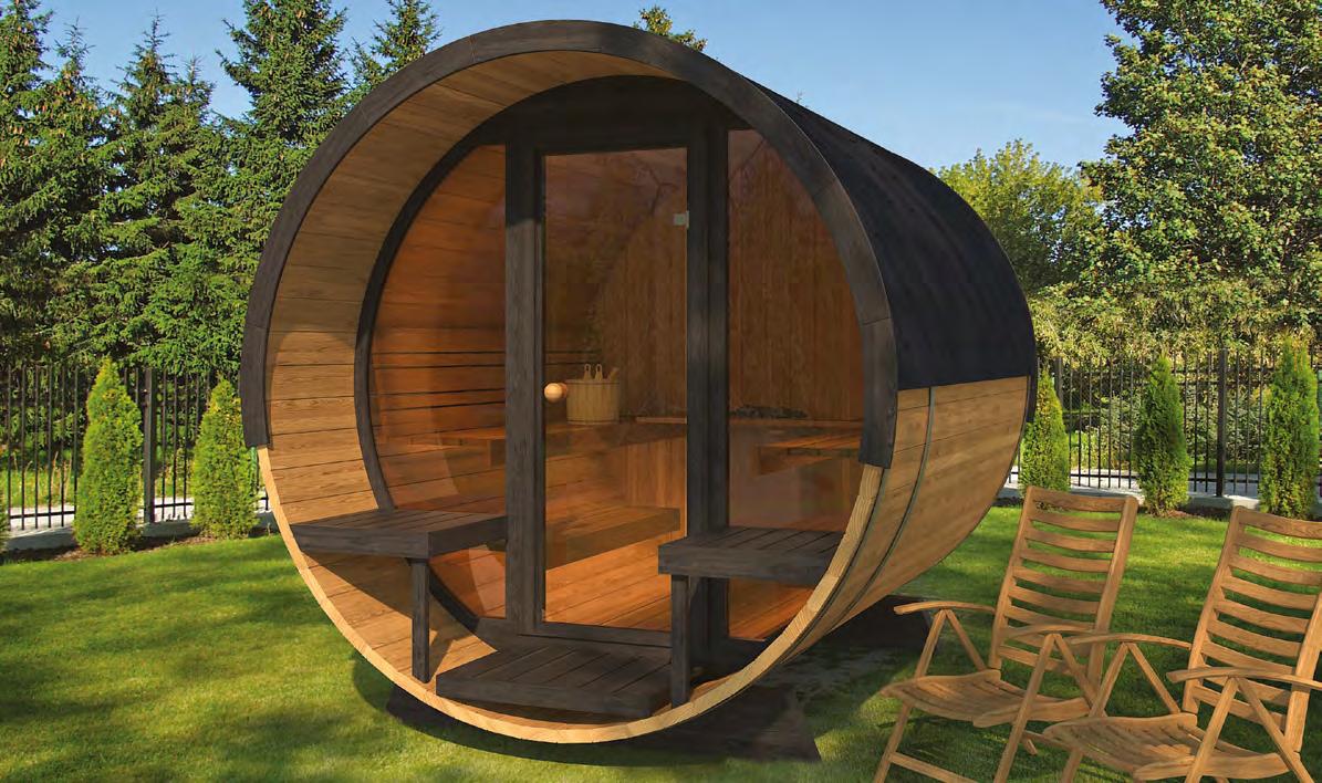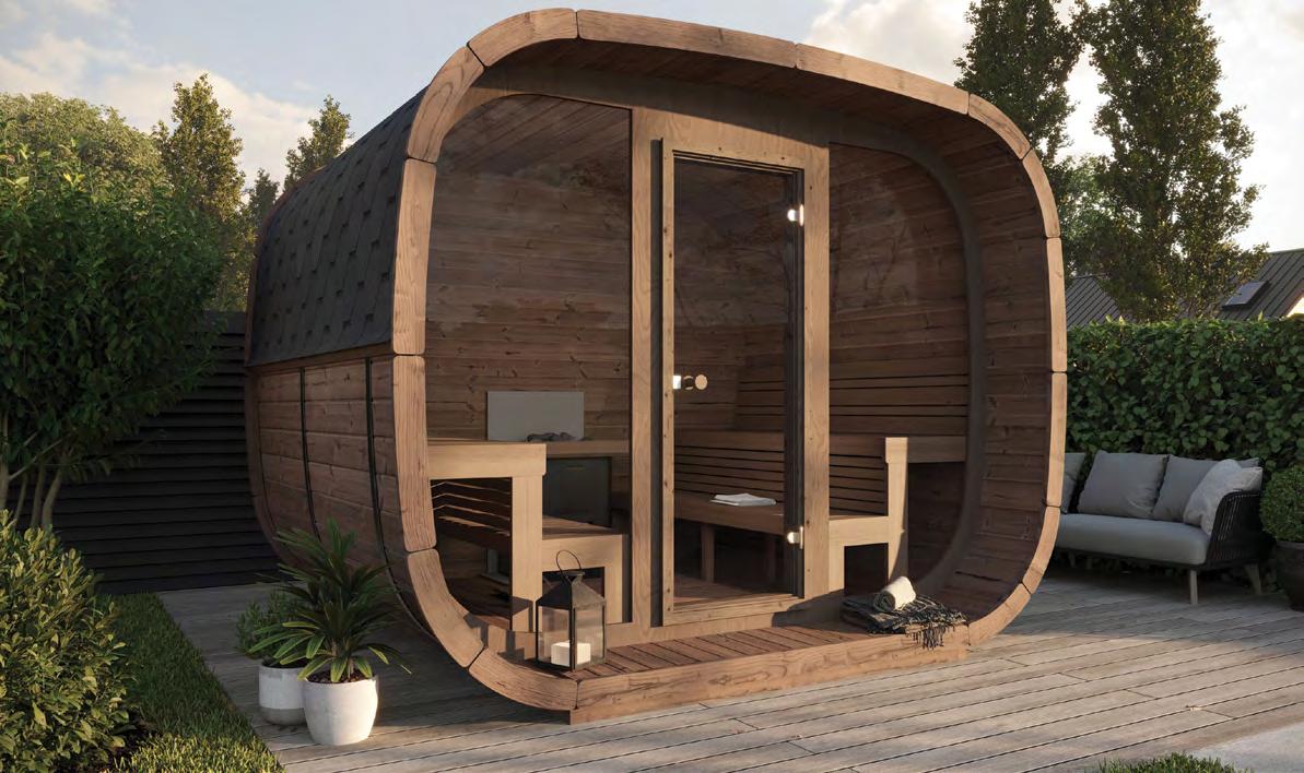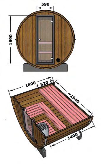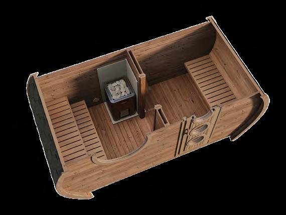 13 SAUNAS I BARREL SAUNAS OVAL SAUNA FRODO 400 x 300 cm 248 cm 42 mm 42 mm Ø90 cm 70 x 180 cm 1800 kg 500 x 120 x 120 cm 8 kw saunaofn fylgir með 1.595.000 kr.
