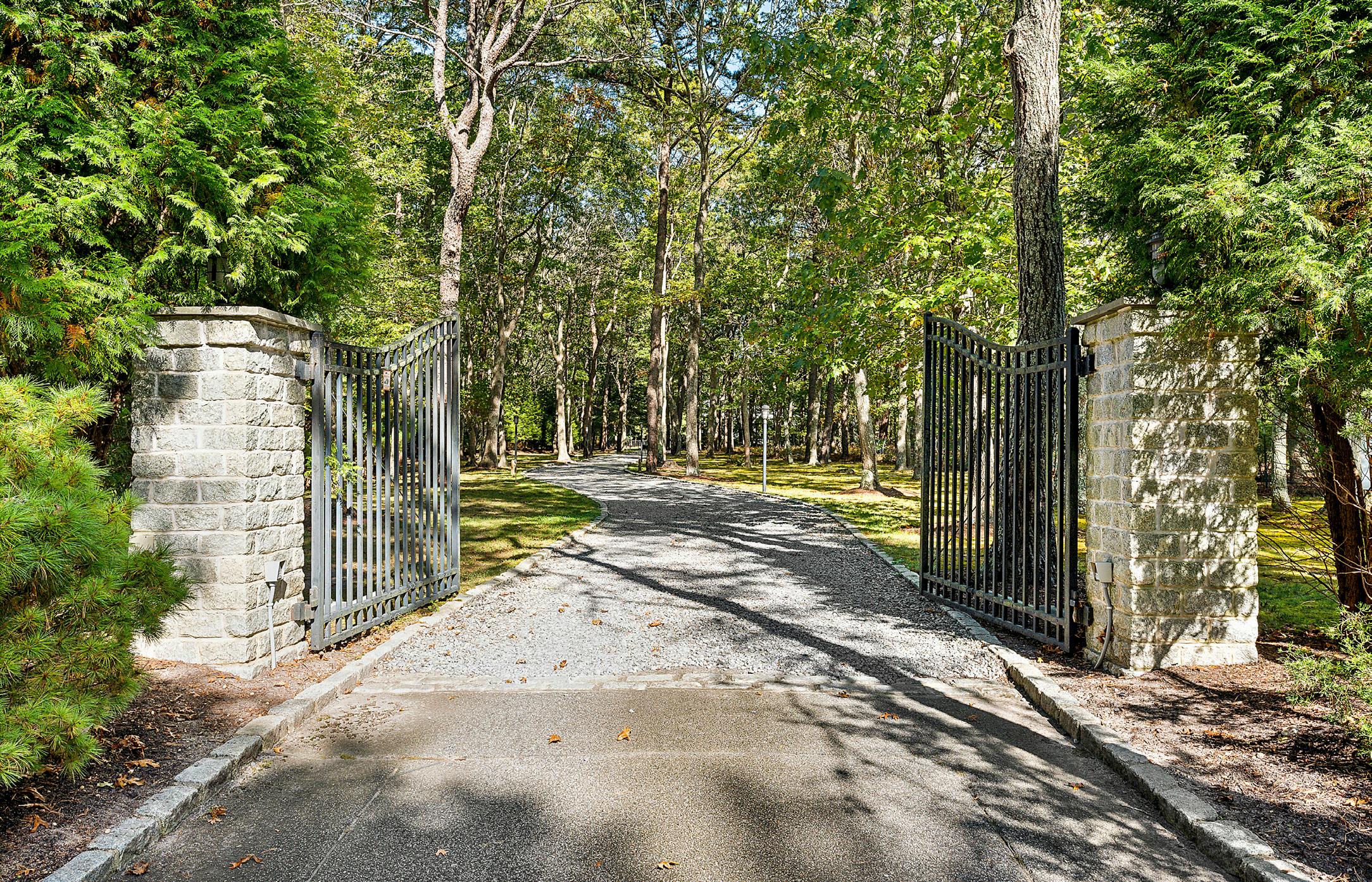 • Long, gated stone driveway, Belgium block curbing, with ample parking in front of residence, XL circular turnaround driveway for convenience/ off-street parking