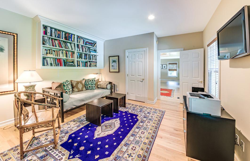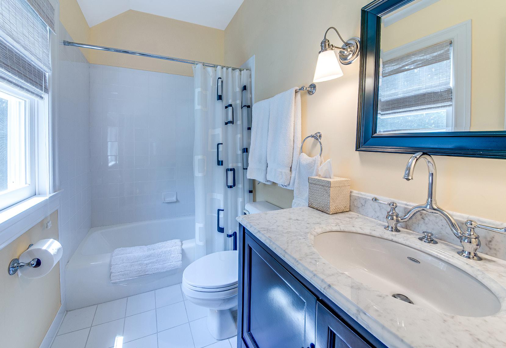 Located upstairs is the primary bedroom with a walk-in-closet and en-suite bathroom as well as two additional guest bedrooms with attached bathrooms.
