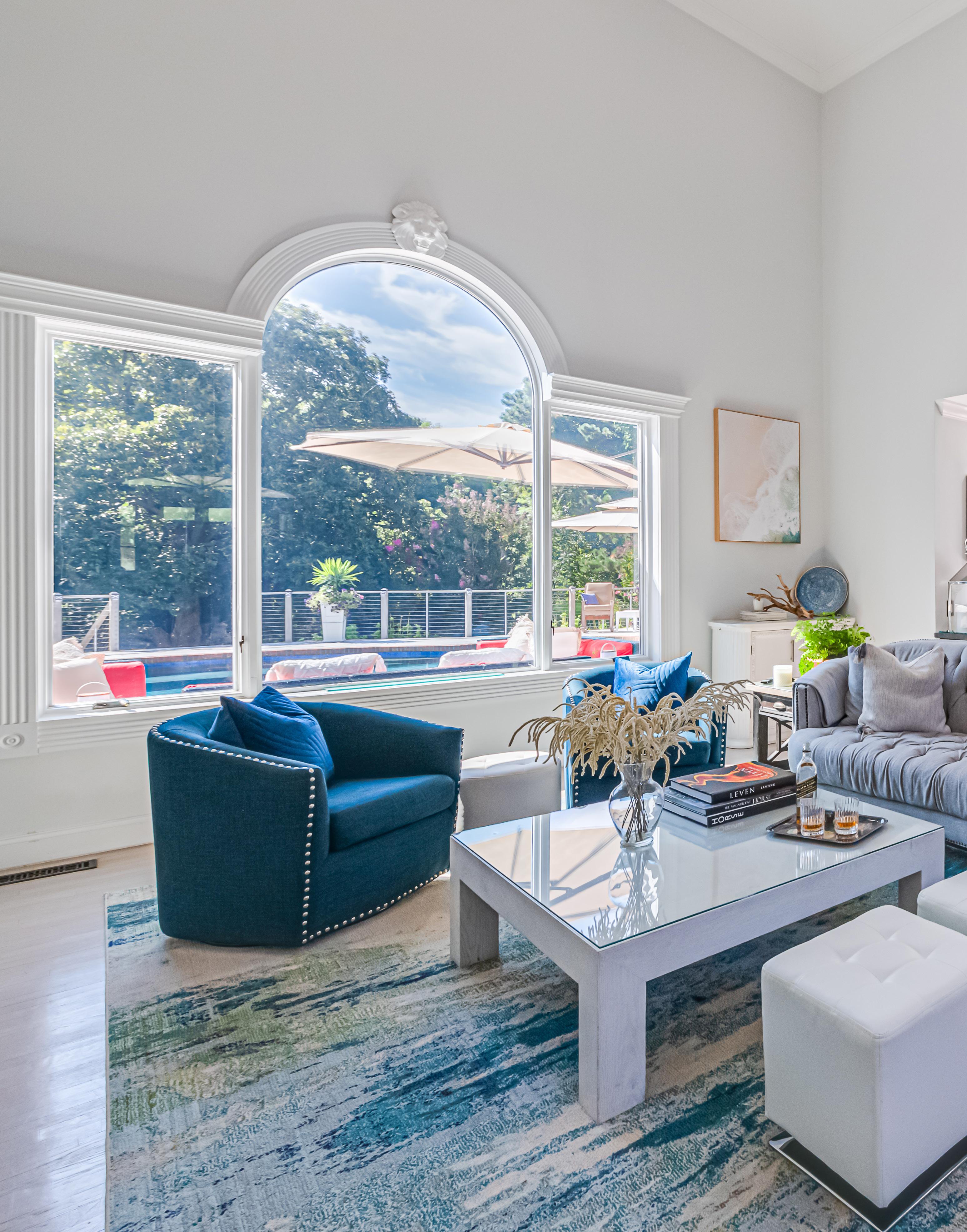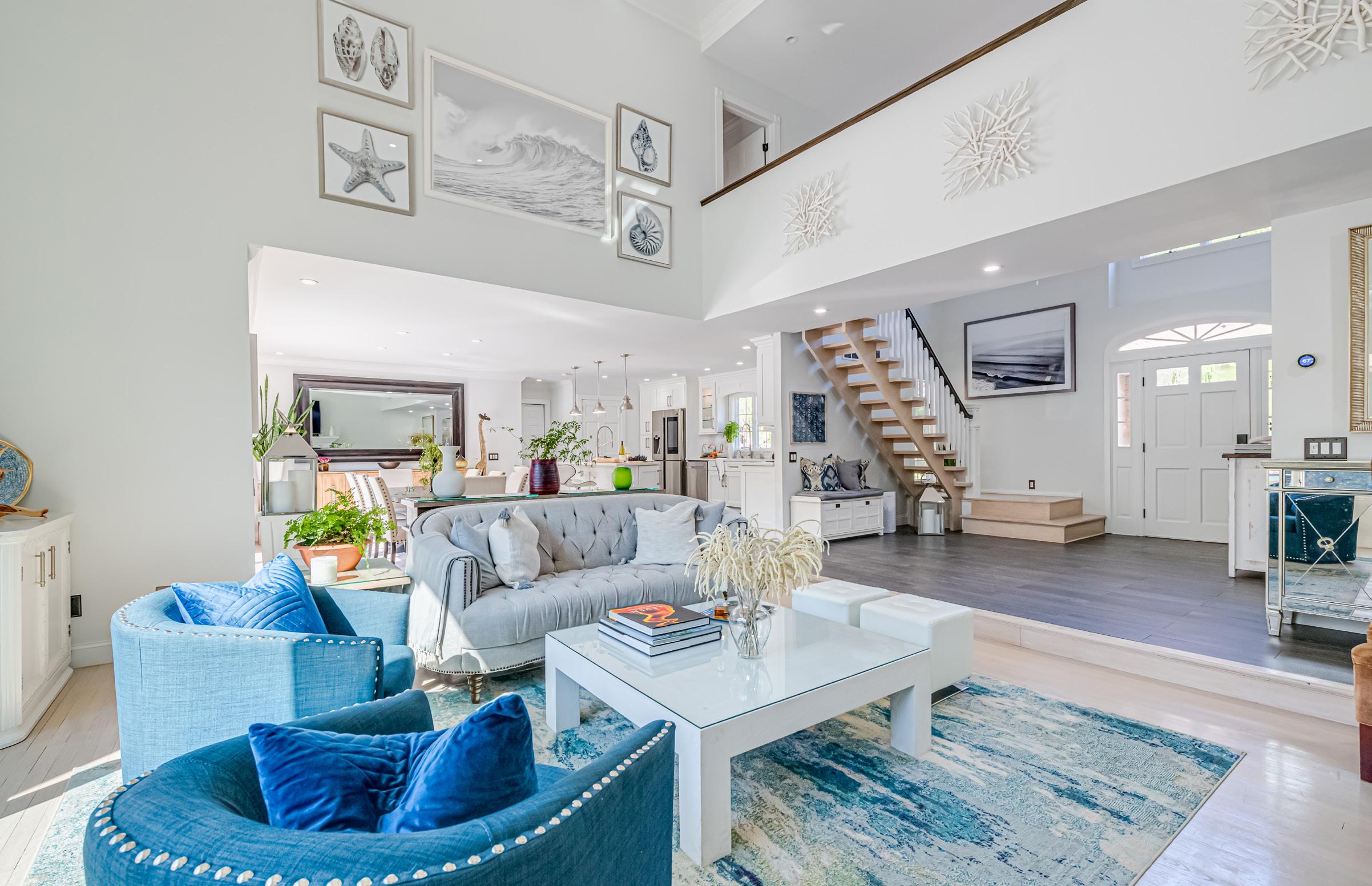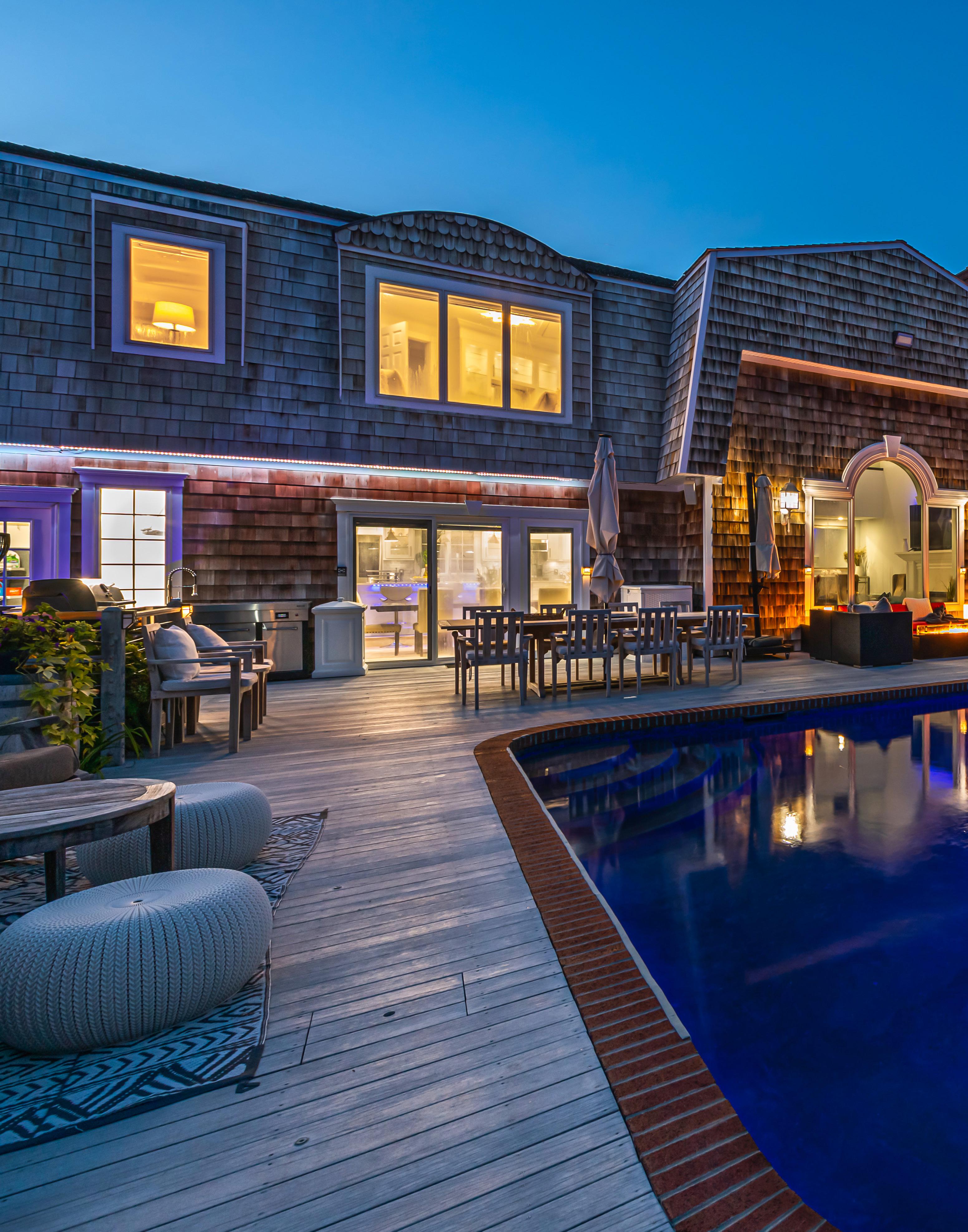 Sited perfectly at the apex of Blackwatch Court, this turnkey Hamptons home is bursting with fabulousness that is in no small part facilitated by the sun-sparkling, heated Gunite pool where family and friends will enjoy poolside revelry, al fresco dining and pure leisure. Whether it’s party time, or siesta time, this is the place. And the view! The south-facing outdoor living space features mahogany decking, an outdoor shower, 6-person hot-tub, BBQ cook station, sauna, and spectacular Hamptons sunrises and sunsets. Those who venture inside will find 4500 square feet of luxury living space that includes 4 spacious bedrooms, 3.5 baths, and a finished lower level recreational space with two bonus rooms. Upon entering the home, you are greeted with an eye-catching view of the pool area through large windows and sliding glass doors that frame the twostory living room, dining area and chef’s kitchen. A large guest room/den that looks onto the pool area through glass sliders and a powder room complete the first level. Second level features include two guest quarters plus a new XL primary bedroom suite with 2 large custom closets and a sumptuous bathroom with double steam shower, luxurious soaking tub and radiant heated floors. This wonderful home offers 3 electric fireplaces, 2 private balconies, professional landscaping, ample courtyard parking, two driveways, lower-level egress, and a indoor/outdoor Sonos sound system. Amenities galore! Located minutes to Southampton Village and Coopers Beach.