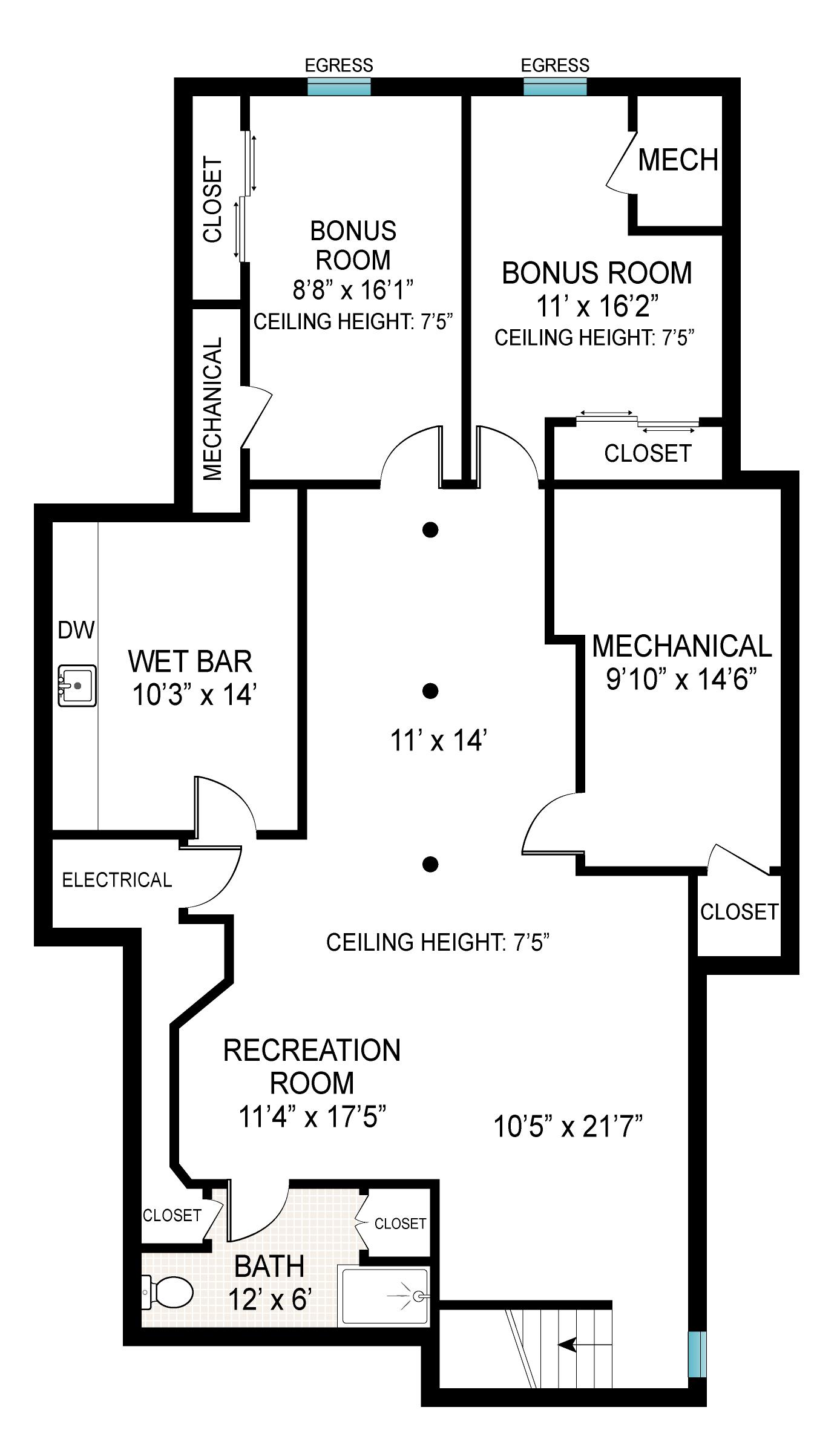 • 2 Bonus Rooms (with egress windows in Finished Lower Level)