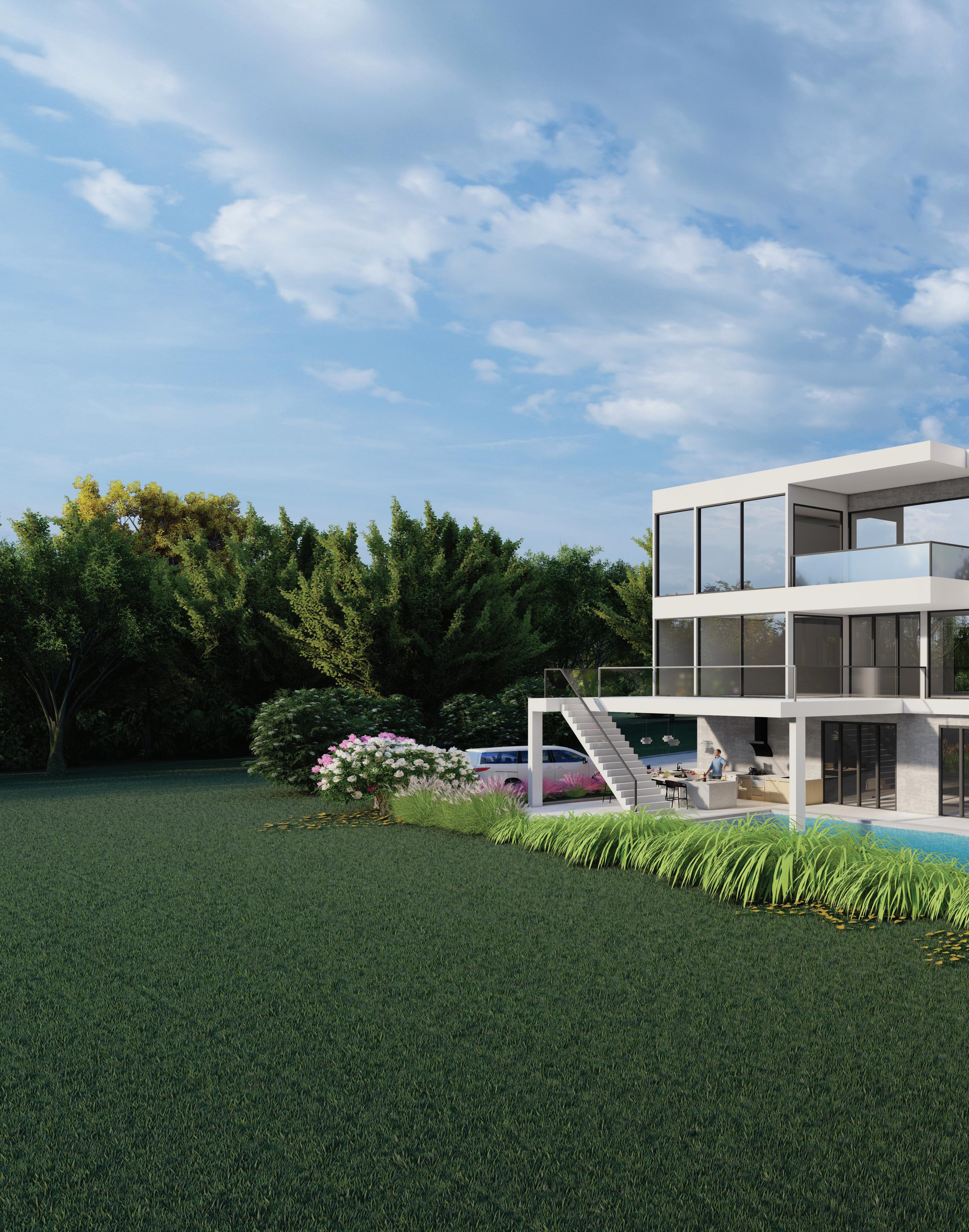 This property, located South of the Highway in Water Mill, has approved plans for a new, ultramodern home built on a 1.85 ⁺/- acre flag lot with a bucolic pond. Gated and private, located off a quiet cul-desac with little traffic, the home provides 14,862⁺/- sq. ft. of living space on 3 levels. This impressive home includes walls of glass doors and windows that flood the interiors with natural light, 11' ceilings on the first and second floors and 10' on the lower level, plus a rooftop tennis court. There are 10 bedrooms including the primary and junior primary suites, 11 full and 2 half baths. Features include a gourmet eat-in kitchen, vanities, and laundry room by Gary Ciuffo, a separate chef's kitchen, a morning room with glass balcony, and 21'x28' primary suite with a glass balcony and his and her closets and baths. The finished lower level includes a gym, media room, living room, and bar kitchenette, and a walkout to the pool area that is also accessed by stairs from the main floor. Three glass balconies on the third level overlook the