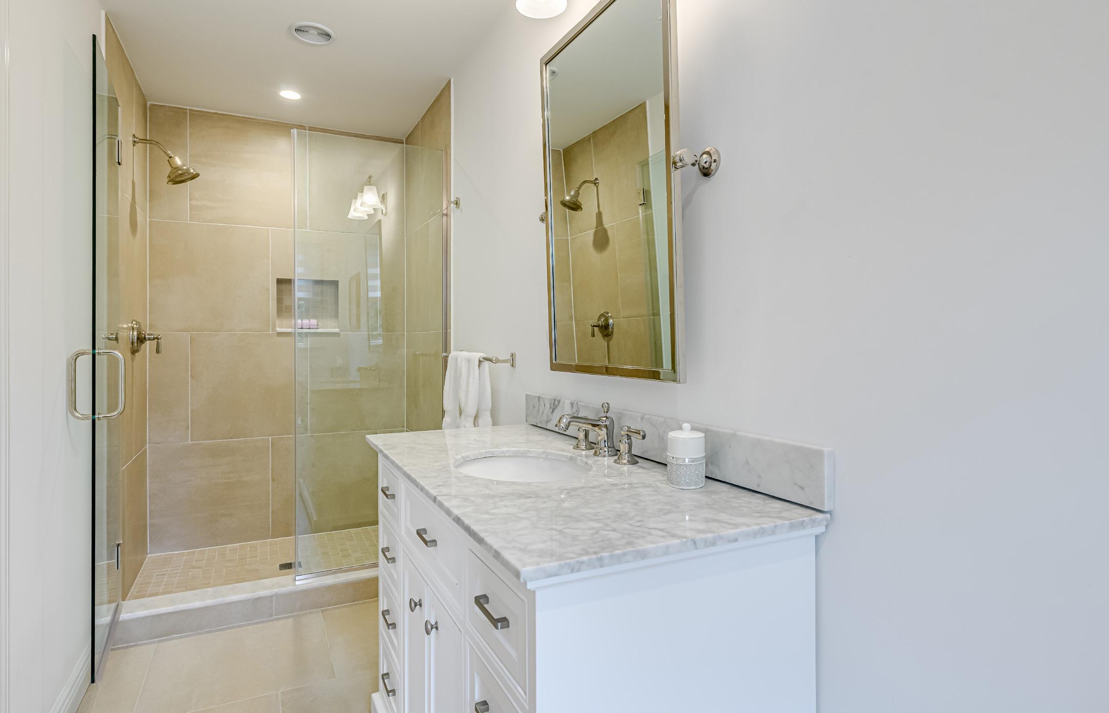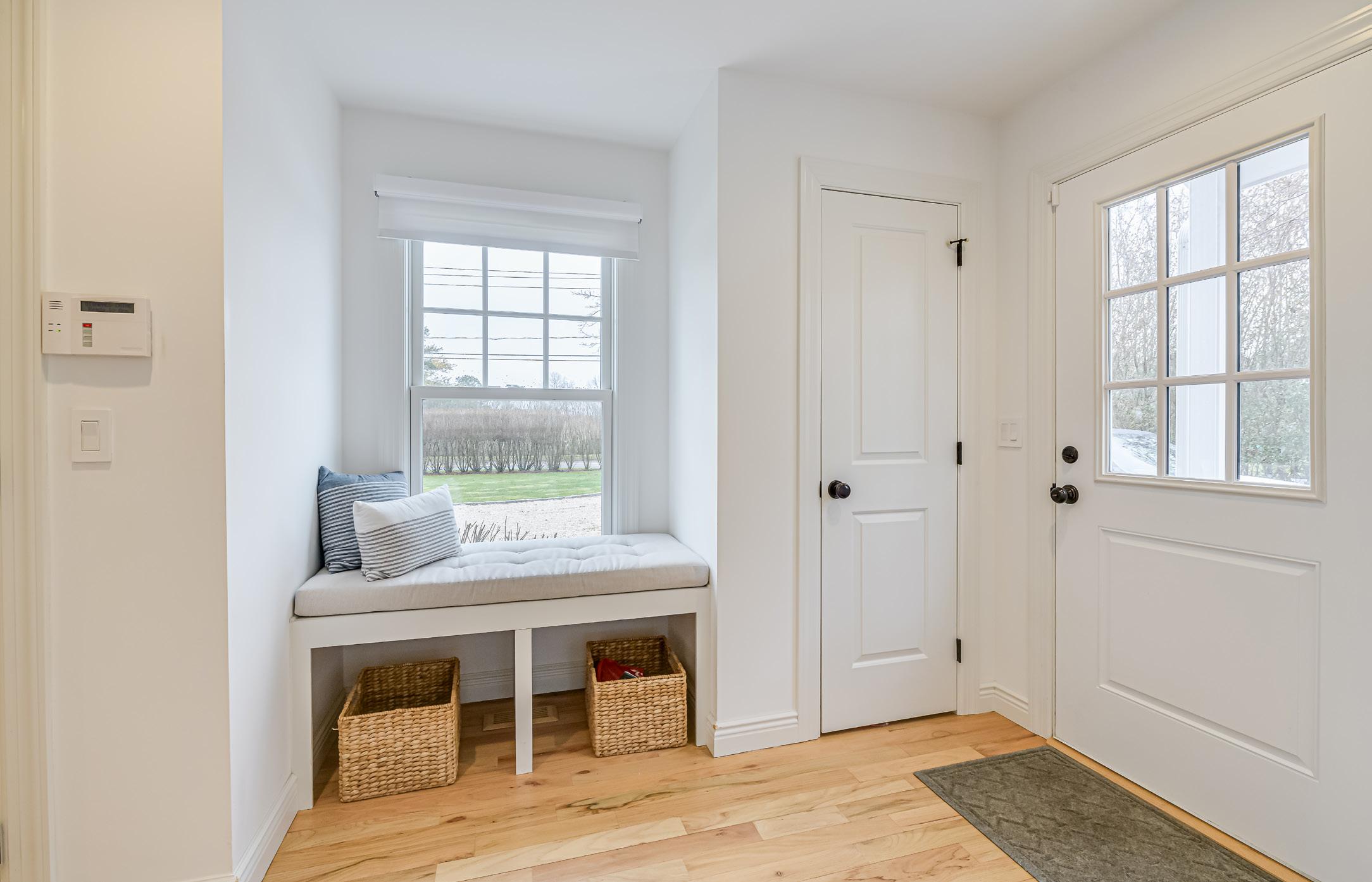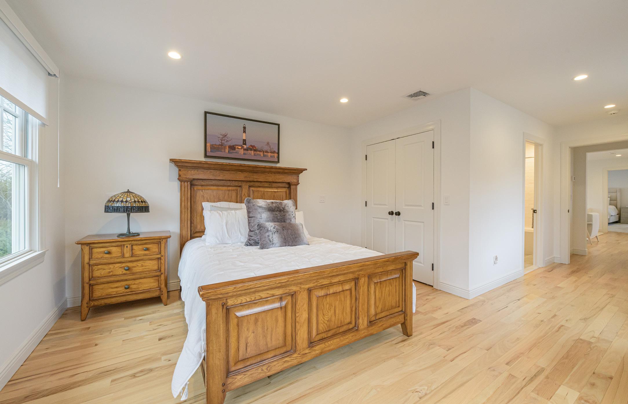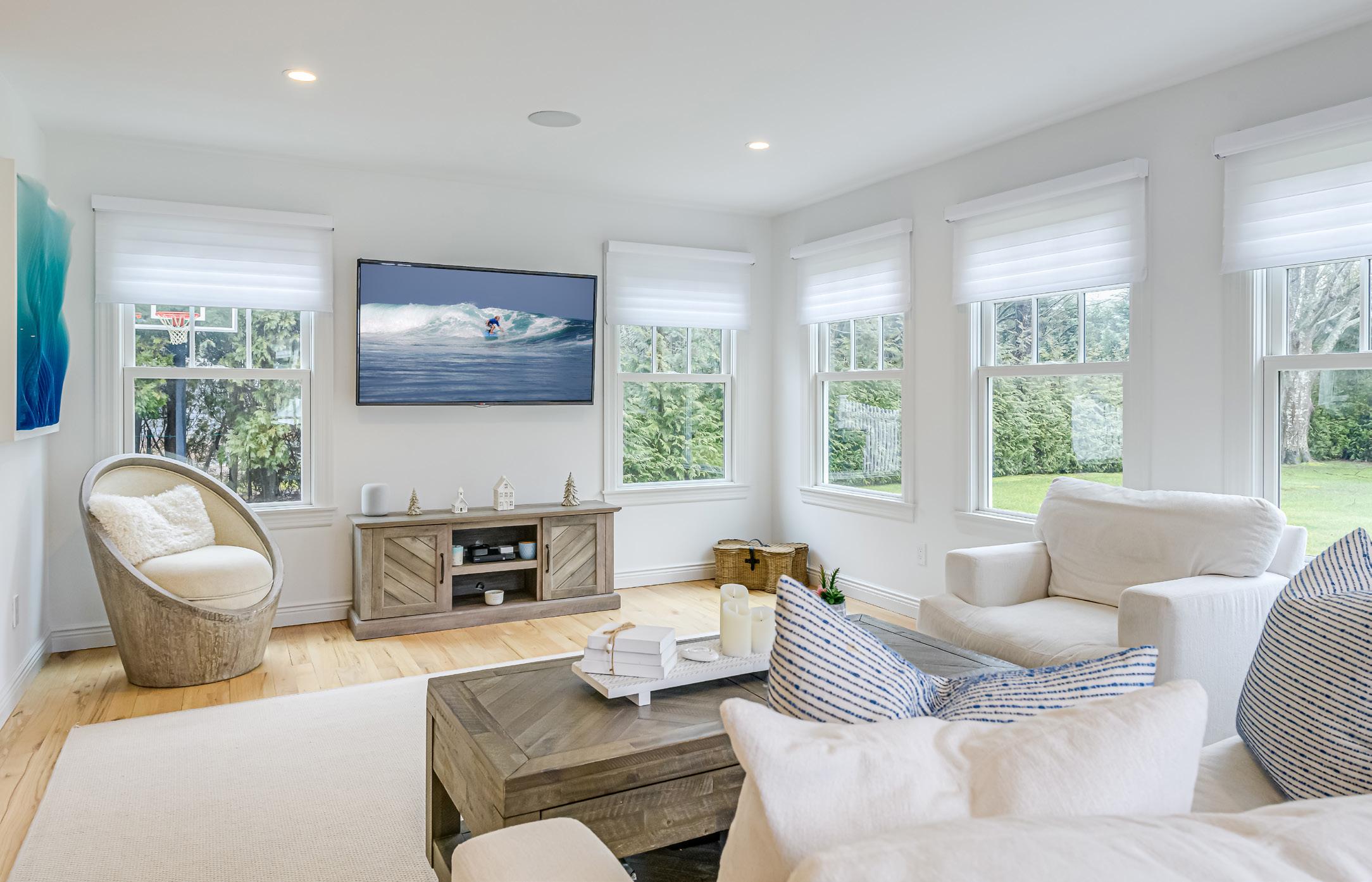 Entirely renovated in 2019, this traditional home is conveniently located South of the Highway, moments from beautiful Coopers Beach and five world-class golf courses, including the prestigious Shinnecock Hills Golf Club, the Southampton Golf Club, and National Golf Links of America. Privacy and peace surround this beautifully renovated property in a neighborhood of quiet streets. Situated on .56 acre, the 3,800⁺/- sq. ft. home features 80+ perimeter trees that protect a sprawling western-facing backyard. Inside, a generous open floor plan on the first level flows from the entry to the dining area with a dry bar, a living room with a fireplace, and an ensuite bedroom. The kitchen is equipped with premium stainless steel appliances by Thermador and Bosch and opens to a family room overlooking the backyard with egress to a generous patio for dining al fresco. The first floor is completed by a powder room, side entrance/mud room, and generous food pantry. Upstairs are 3 ensuite bedrooms all with custom California closets, including the primary bedroom with a walk-in closet, a luxe bath with a dual vanity sink, and a large glass-walled shower. Plus, a breathtaking outside deck to enjoy dazzling sunsets. Also on this level, an open area perfect for family time or movie watching and a laundry room with a linen closet. The finished lower level has another half bath and is ready to accommodate a spacious media or rec room. Loaded with premium technology that takes this luxury home to another level, including a built-in Sonos system throughout the home and patio, automatic blinds and sprinklers, a Lutron lighting system, security cameras, and outside WiFi boosting. No detail has been spared in this home complete with stair runners, ample storage, a Fido fence, French drain on the front, and a circular driveway with a stone parking area. Easy outdoor living is maximized with a heated 20’x40’ gunite pool with a new heater and a spacious 20’x14’ bluestone patio for relaxing by the pool. The flat, open backyard includes a half basketball court and allows for plenty of room for recreation and entertainment.