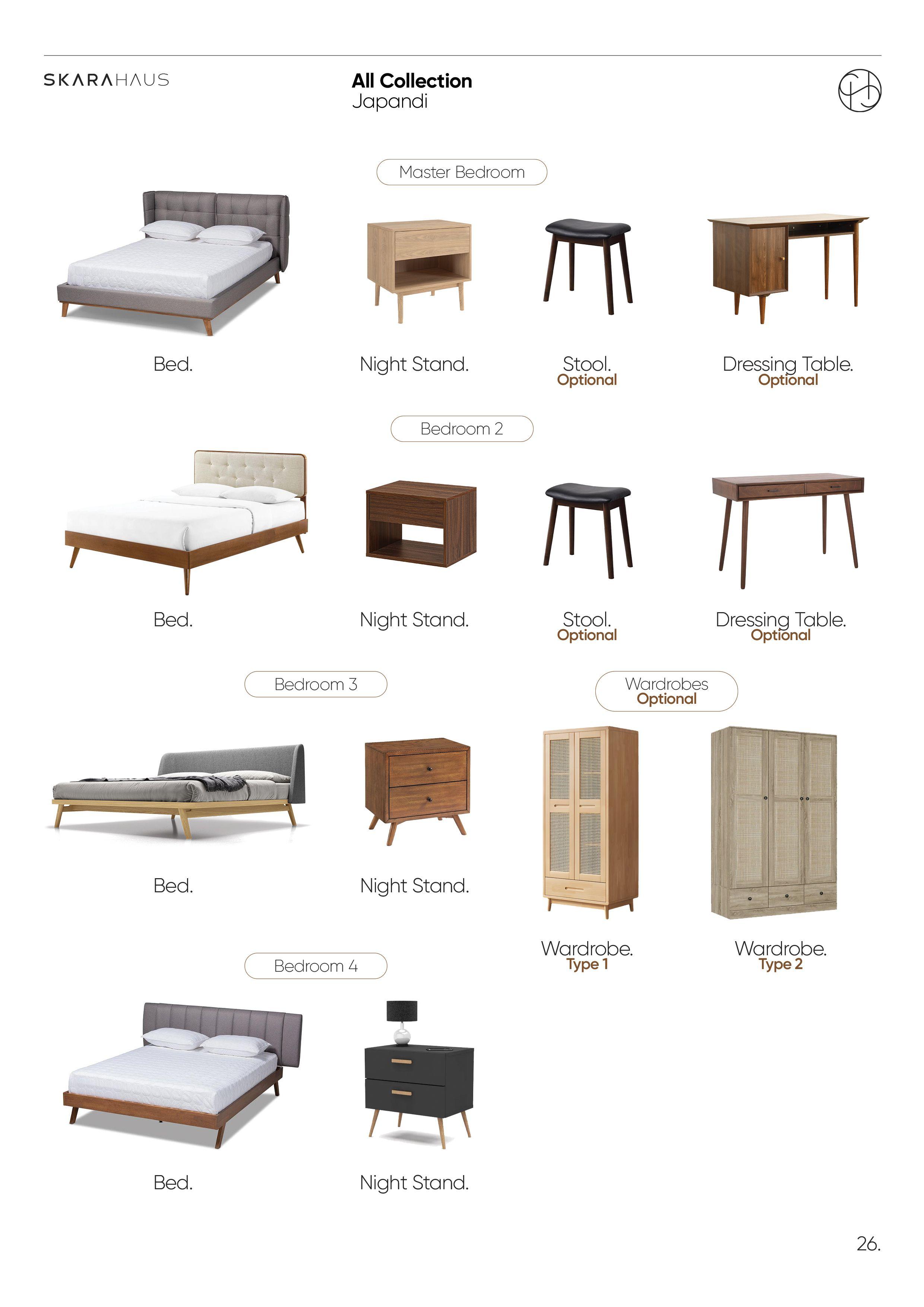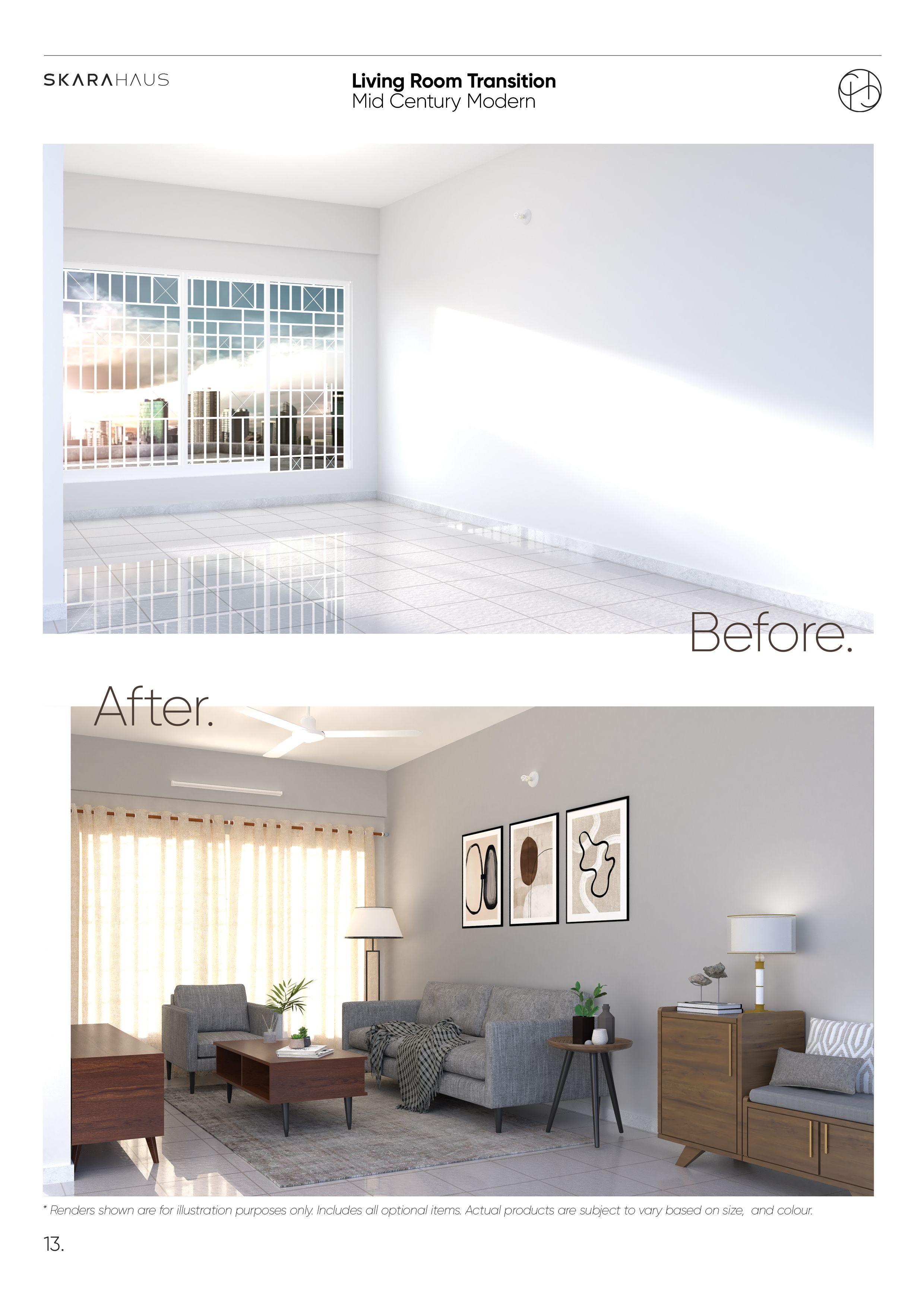 Skarahaus offers a curated selection of customizable furniture packages designed to cater to diverse aesthetic preferences. Embracing three distinctive styles—Mid Century Modern, Japandi, and Urban Loft—each package combines functionality with timeless elegance.