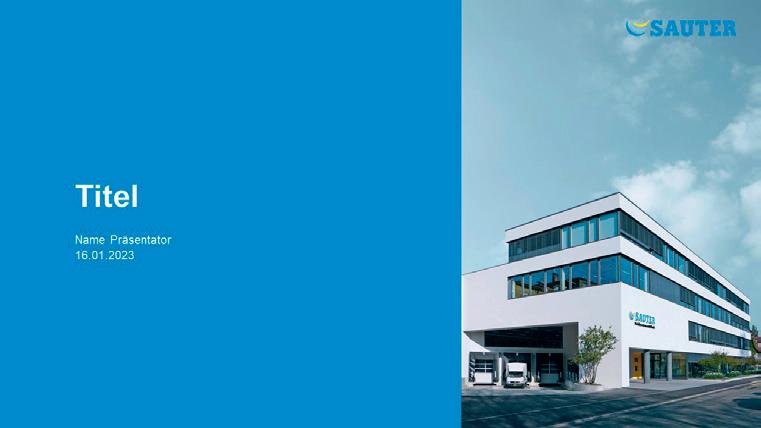 The SAUTER brand elements are an integral part of the presentation templates. This ensures the presence of our brand message and minimises the time to design presentations. The various layouts of the PowerPoint templates help you to create clear and appealing presentations. You can create a presentation with the SAUTER brand image and focus entirely on your content.