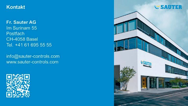 The SAUTER brand, logo and various product names are registered with the Swiss Federal Institute of Intellectual Property (SIS) (with validity both for Switzerland and for various other countries where SAUTER is active).