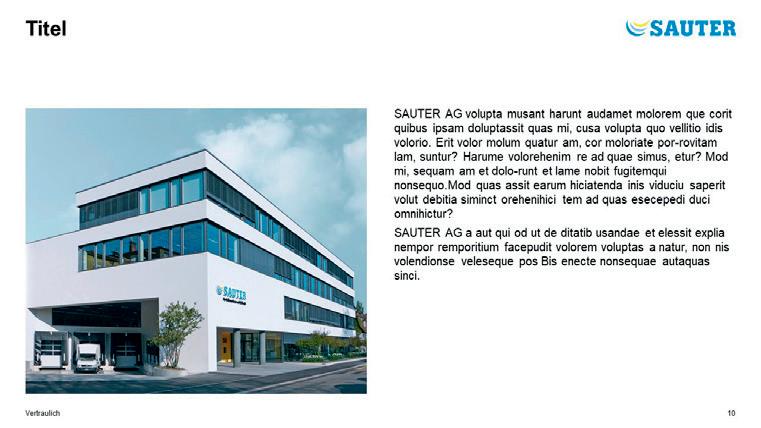 Every presentation reflects on SAUTER A well-designed presentation reinforces our brand message, and the standardised appearance signals professionalism, quality and precision.