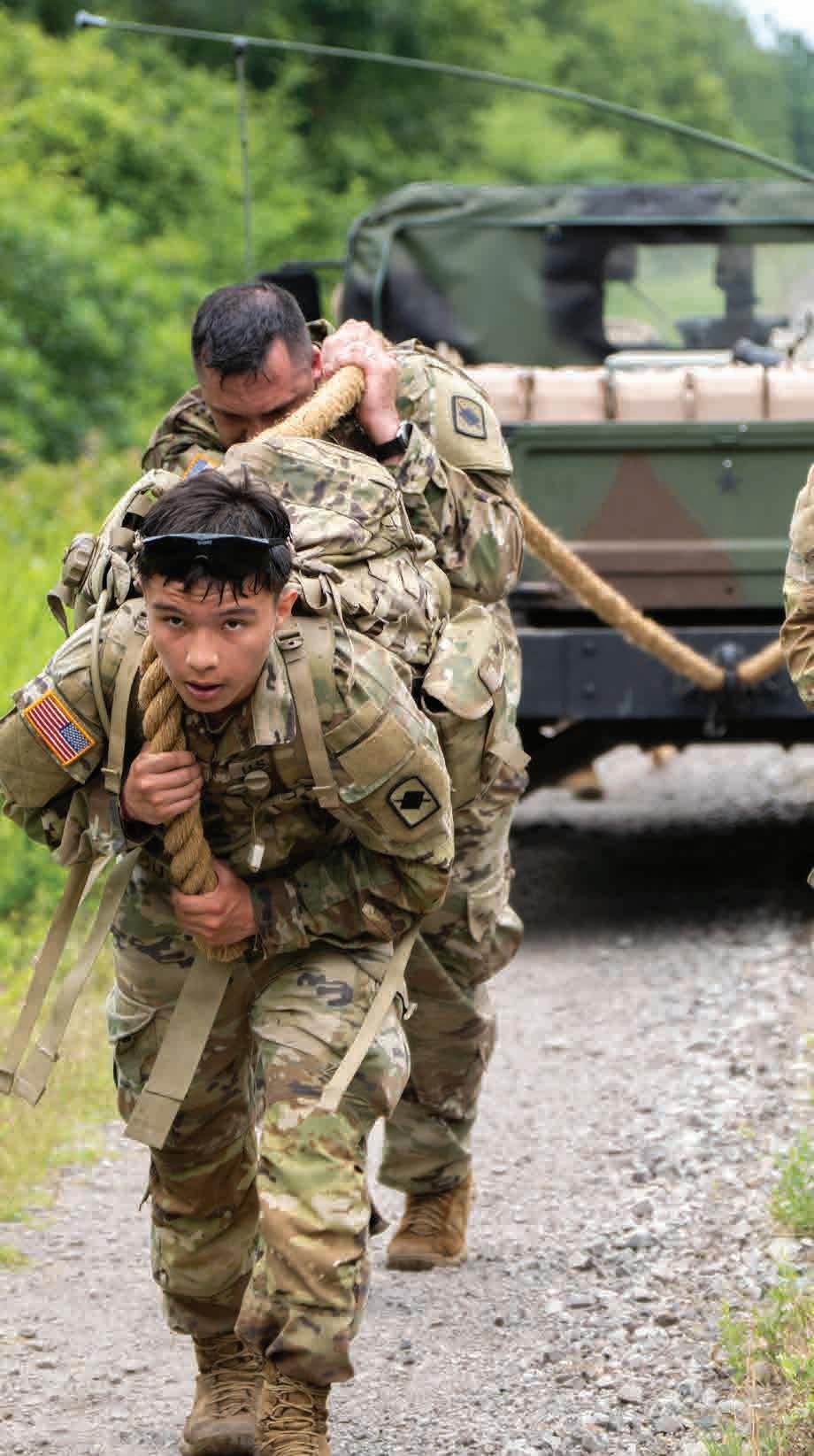 Feet pounded against the ground as they set off, their footsteps creating a rhythmic cadence. The path ahead was arduous, filled with steep inclines and uneven terrain, but the squads pressed on, their resolve unyielding. At various checkpoints along the way, the squads faced team activities designed to test their cohesion and problem-solving skills. The litter carry required them to transport an ‘injured soldier’ on a stretcher, simulating the challenges they might face in the field. The humvee drag demanded strength and teamwork as they harnessed their collective power to move the heavy vehicle.