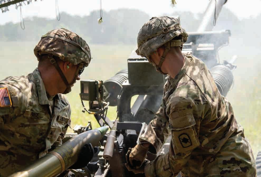 “It shoots Highly Explosive,” explains Sgt. Reo Blow, Chief Crew Gunner, 2-142nd Bravo Battery. “Unlike a bullet, which has the gunpowder inside… you put the propellant, or gunpowder, behind [the round]. Then you have a primer, where you strike the pin and causes all components to work together, sending the round off.”