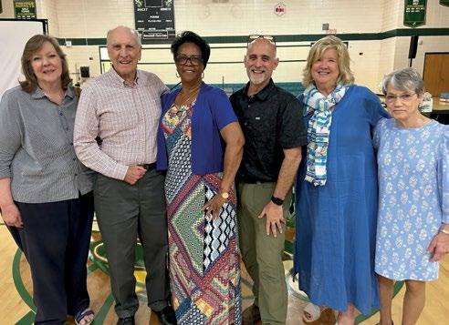 Golden Hornets gathered to celebrate the close of the school year at the End-of-Year Faculty Recognition Party, where they joyfully welcomed Adam Weber and Annie Hines into this cherished group. It was a heartfelt moment honoring careers marked by dedication, friendship, and lasting impact. Pictured from left: Vondean Williams, Paul Pressly, Annie Hines, Adam Weber, Terri Barfield, and Debbe Furey