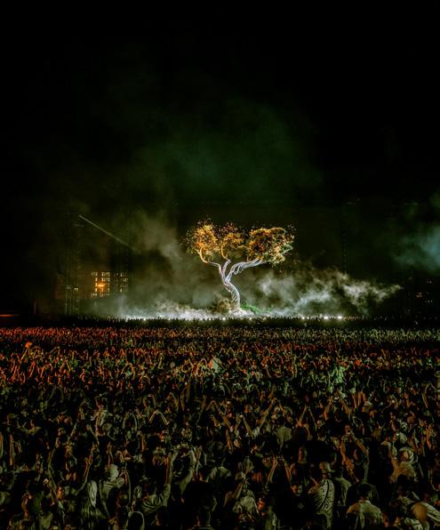 Raving is built on the PLUR motto, which stands for Peace, Love, Unity, and Respect. This motto connects how people act in the crowd. A tra- dition amongst ravers is kandi trading, which is when people trade bracelets through a special handshake. Totems, which are giant, decorated signs, are another tradition amongst ravers. These signs help friends find each other if they get lost. What started as secret parties in private locations has now turned into multi-day festivals with massive EDM artists and production, but rave cul-