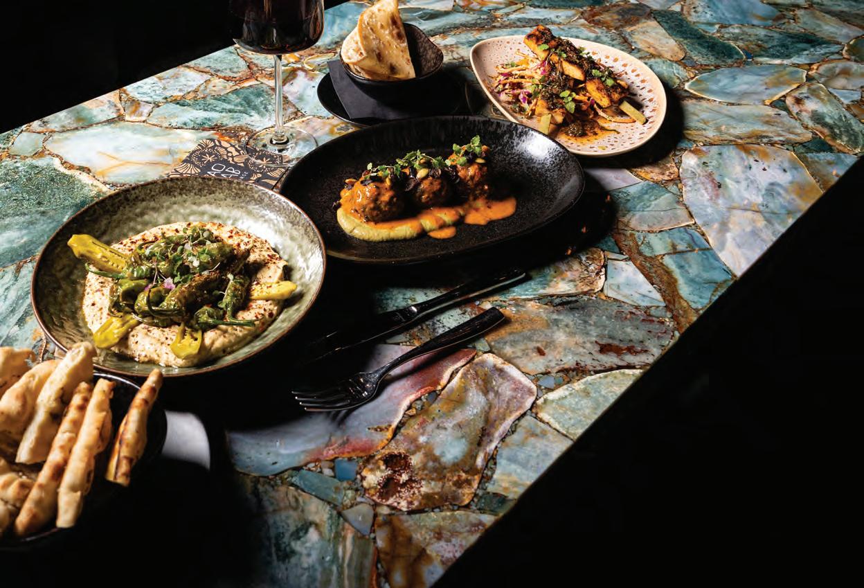 OUR SPECIALTY: Lamb Meatballs – it’s bold yet refined with a rich, earthy depth of perfectly seasoned lamb complemented by the sweet, nutty essence of tahini. To elevate the dish, an eggplant chutney adds a delightful balance of tangy and smoky notes, creating layers of irresistible complexity.