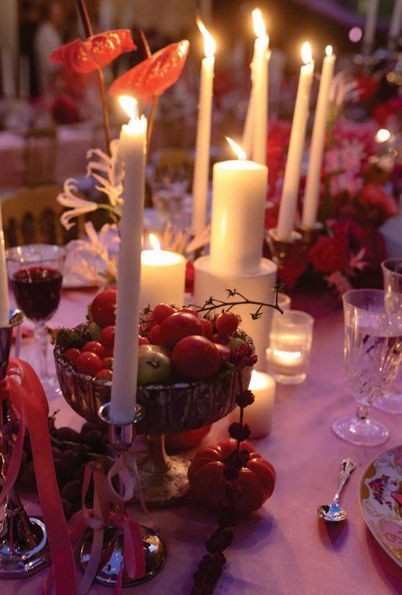 I was back in my hometown celebrating the marriage of one of my longtime friends, Rujuta, to her perfect match, Abhijan. Their Hindu wedding included rituals from their cultures — Marathi and Punjabi, respectively — beginning with the baraat: the groom’s procession to the wedding venue. Dressed in beautiful purple and gold, Abhijan stood in the back of a pickup truck adorned with garlands of marigolds, while another truck outfitted with a DJ and speakers led the way. Guests of all ages danced and clapped behind them, throwing their hennaadorned hands in the air and cheering along the way. All the sounds and colors, combined with so much palatable joy in one place, were emotionally overwhelming — an uplifting feeling that buoyed the crowd to our destination: a hotel ballroom with soaring ceilings, a wall of windows and chandeliers dripping with so many fresh blooms that the whole room smelled like a florist boutique.