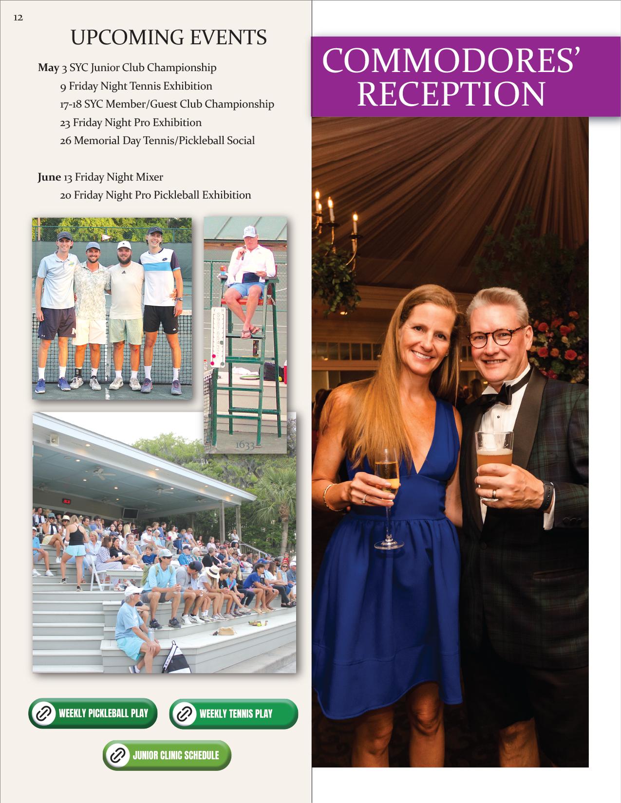 Itrustyouhadamemorableexperienceatthisyear'sCommodore's Reception. It wasagreatevening, thankstoourSYCstaffwhomadethenighttruly special. Ialso wanttothankmywife, Susan, forhereffortsinassistingthestaffwithplanninghersupportbehindthescenesmadeabigdifference,and I amverygrateful. TheSunsetBar& Grillisinfullswing,and Iencourageyoutotakefull advantageof thisfantasticnew venue. Themenu featuresmany fresh anddeliciousoptionsincludingpizza!