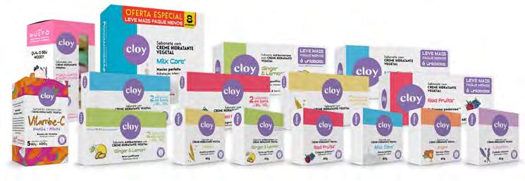 Segmento Sabonetes hidratantes Com creme hidratante vegetal, fragrâncias diferenciadas, sensoriais de hidratação e ativos que cuidam da pele e do corpo, os sabonetes da marca Cloy promovem uma experiência única. Tudo isso com preço ao consumidor mais baixo em relação à marca líder, com a qual concorre.