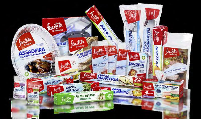 Linha Facilita&Pronto contempla todos os itens mais procurados pelo público no segmento de bazar, a exemplo de papel alumínio, filme de PVC, copos e pratos descartáveis, sacos para alimentos, protetores de fogão, assadeiras e bandejas descartáveis de alumínio, entre outros.