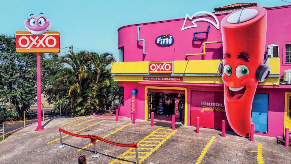 presas parceiras transformaram lojas em plataformas que conectam marcas a consumidores. A iniciativa de Retail Media transforma a loja (tanto a fachada quanto o interior), a partir de um tema específico, em um ambiente de experiência sensorial. Camila Assis, head de marketing e comunicação externa do OXXO, conta que a colaboração