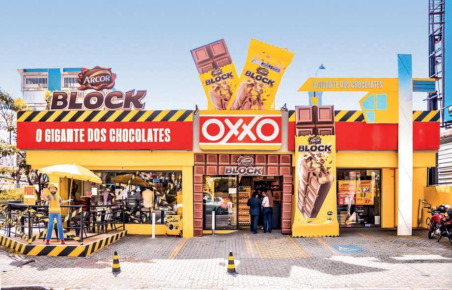 em que se constrói, a muitas mãos, a lógica de atuação que aproxima metas de resultado. Com o objetivo de promover uma experiência de compra diferenciada e imersiva por meio de parcerias com a indústria, as Lojas Emblemáticas, do OXXO, tornaram-se referência desde o primeiro lançamento. Em cada caso, o OXXO e as em-