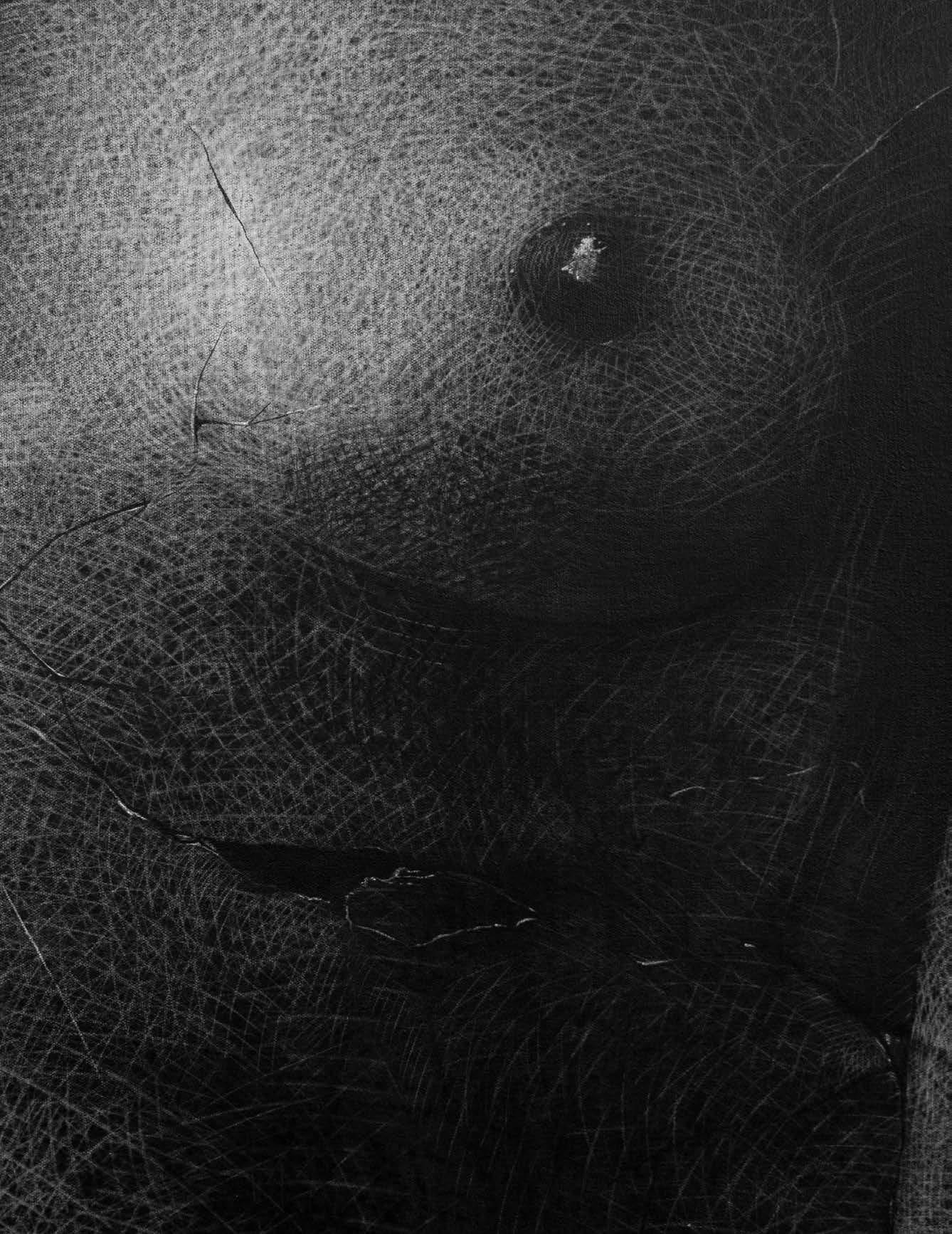 fragment tkanki mięśniowej przypomina niekończący się splot napiętych włókien, a następnie fragmenty te łączą się w klatkę piersiową gigantycznej istoty. „Może kiedyś skomponuję tego kolosa, a może nie” – rozważa Vasyl. Artysta kontynuuje tworzenie tych fragmentów gigantycznego ciała, nie mając pewności, czym będą i czy ostatecznie ułożą się w całościowy obraz. Wiadomo tylko, że każdy nowy fragment będzie inny: kolorowy, z tatuażami czy bliznami. Tak czy inaczej, ale mięśnie, które prześwitują, przebijają się przez skórę, stopniowo splatają się w złożoną koronkę, zamieniając poszczególne fragmenty w jedno płótno.