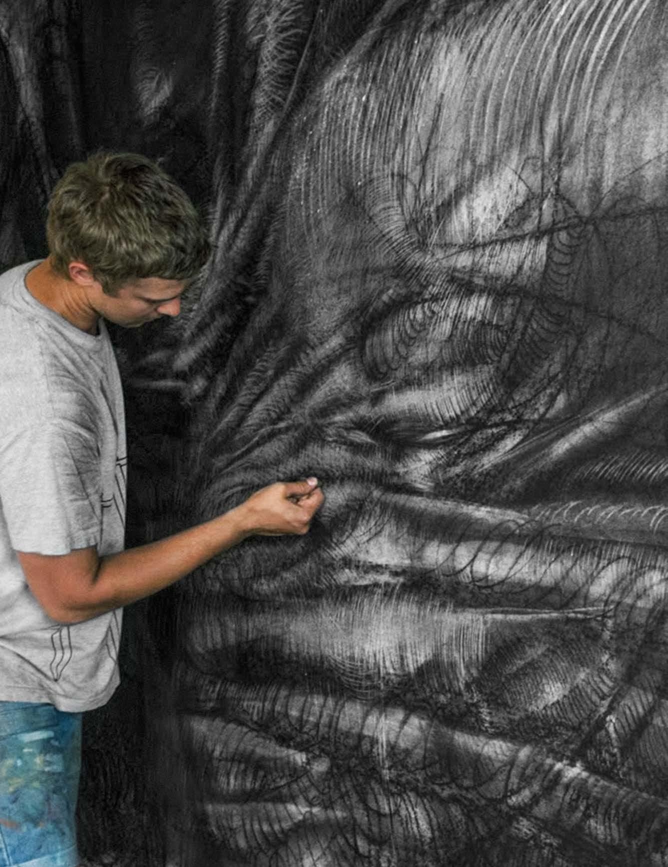 charcoal on paper, 200 × 300 cm. Supported by: Mystetskyi Arsenal National Art and Culture Museum Complex. Place: Kyiv, Ukraine. Drawing was made as a part of the Festival of Young Ukrainian Artist in Kyiv, Ukraine.