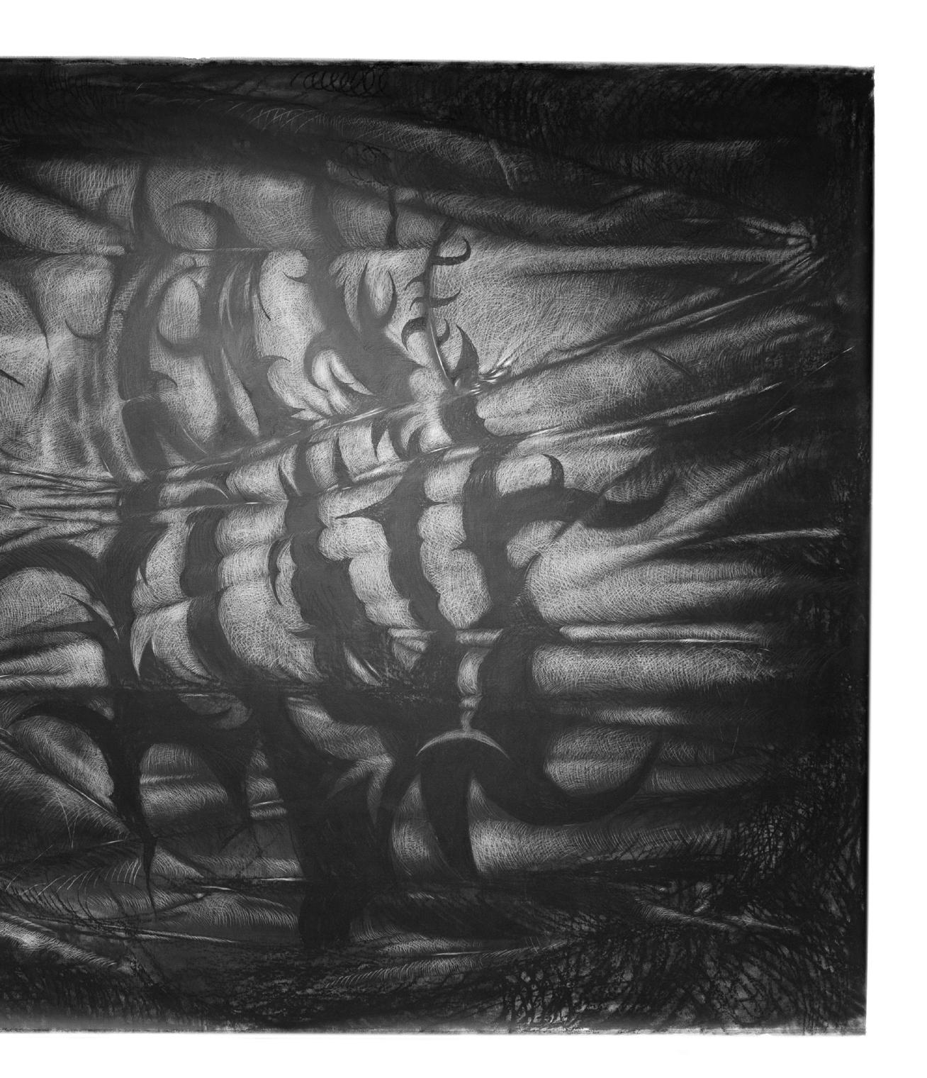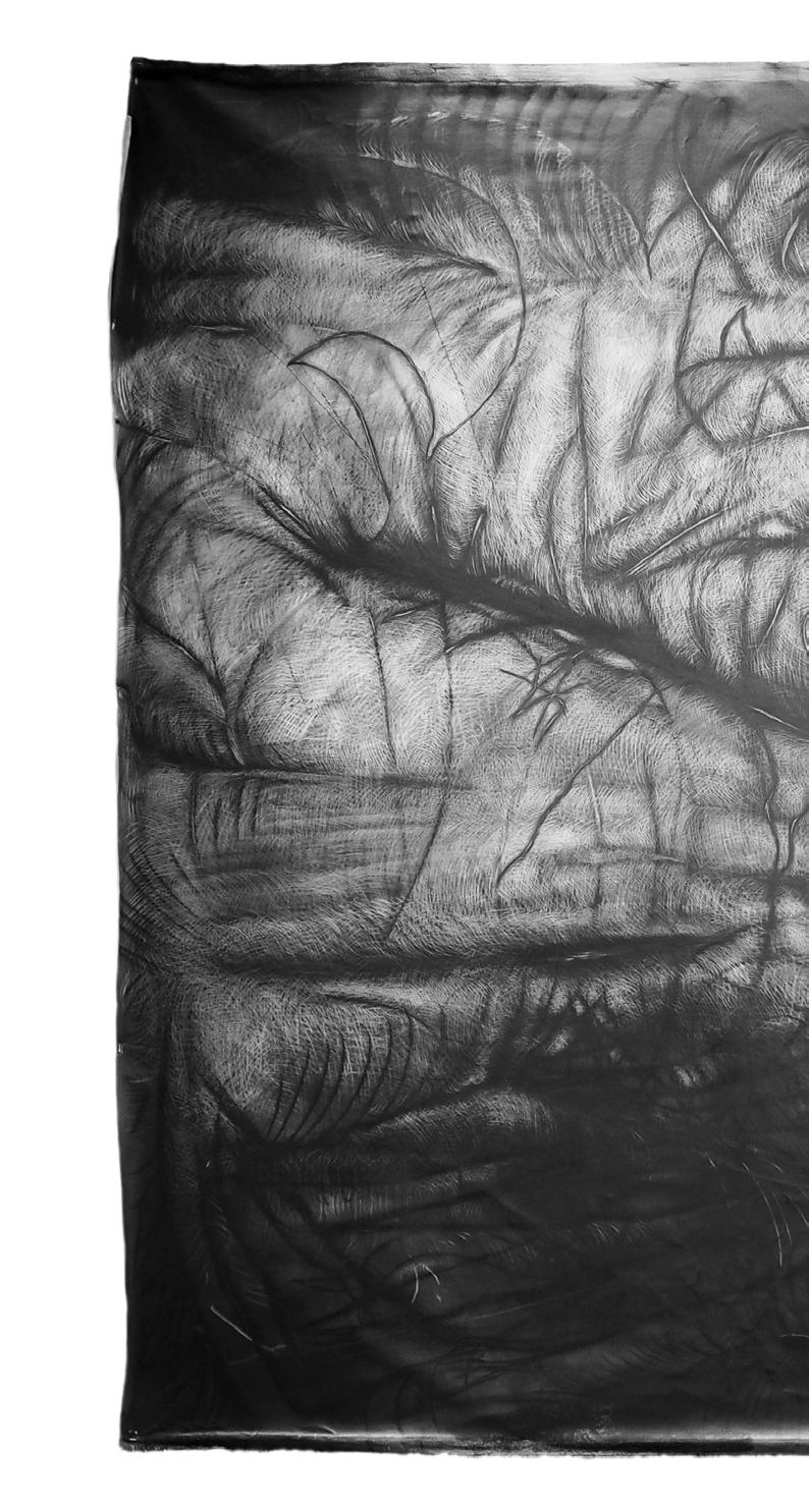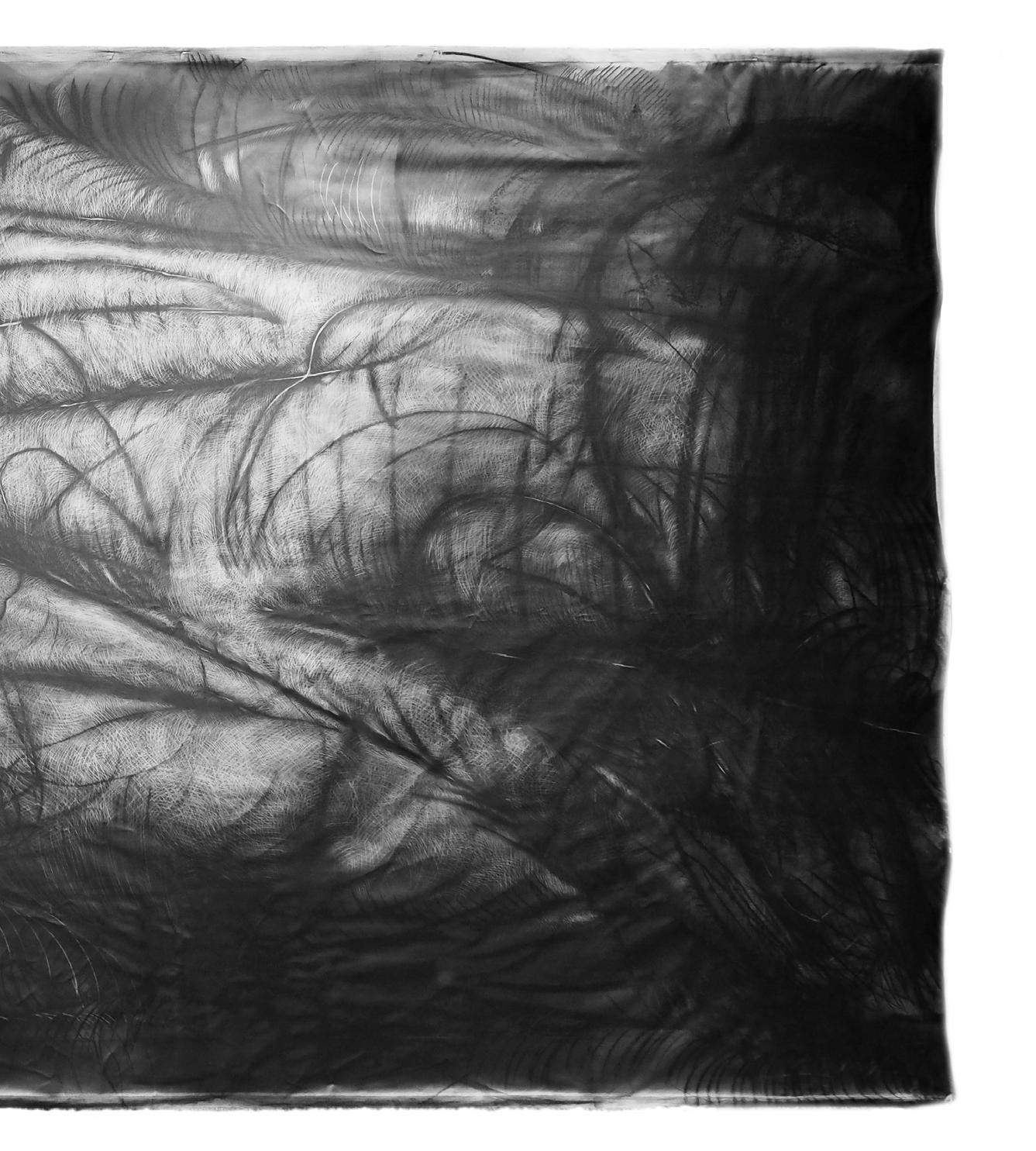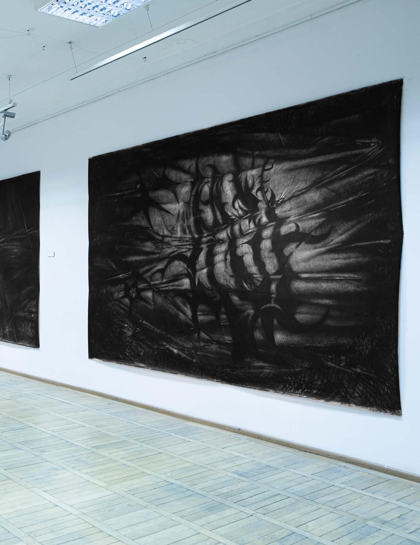 charcoal on paper, 330 × 200 cm. Supported by: Eugeniusz Geppert Academy of Fine Arts in Wroclaw. Place: Wroclaw, Poland. Work was part of Master Degree presentation in Lviv National Academy of Arts, Ukraine