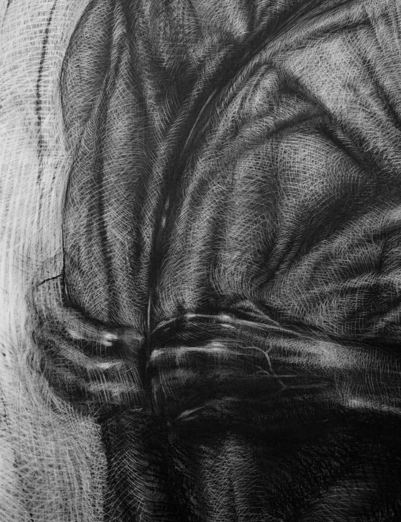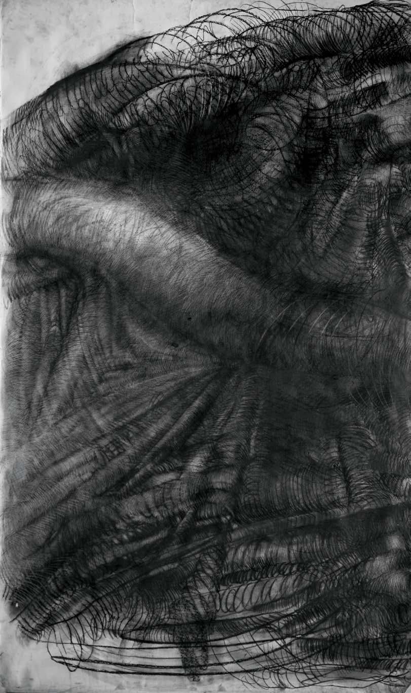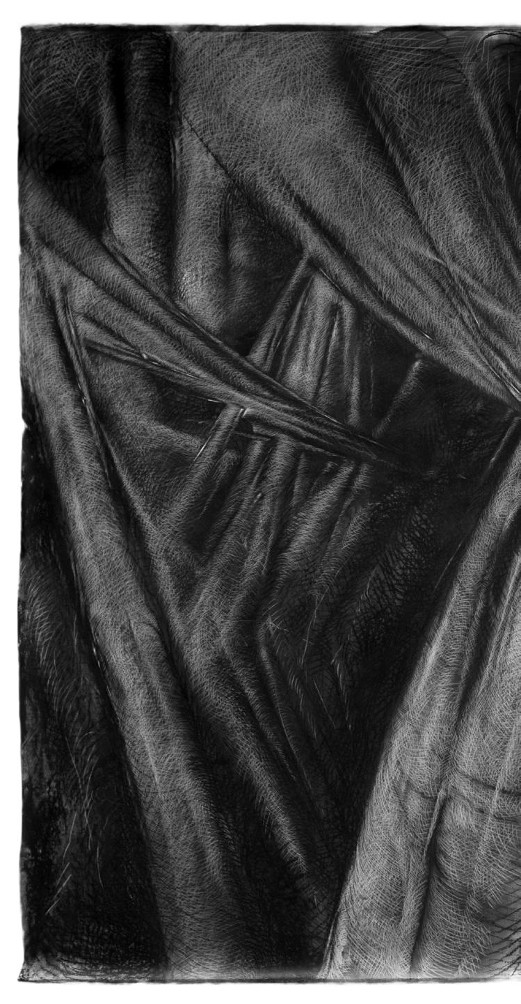 charcoal on paper, 330 × 200 cm. Supported by: Eugeniusz Geppert Academy of Fine Arts in Wroclaw. Place: Wroclaw, Poland. Work was part of Master Degree presentation in Lviv National Academy of Arts, Ukraine