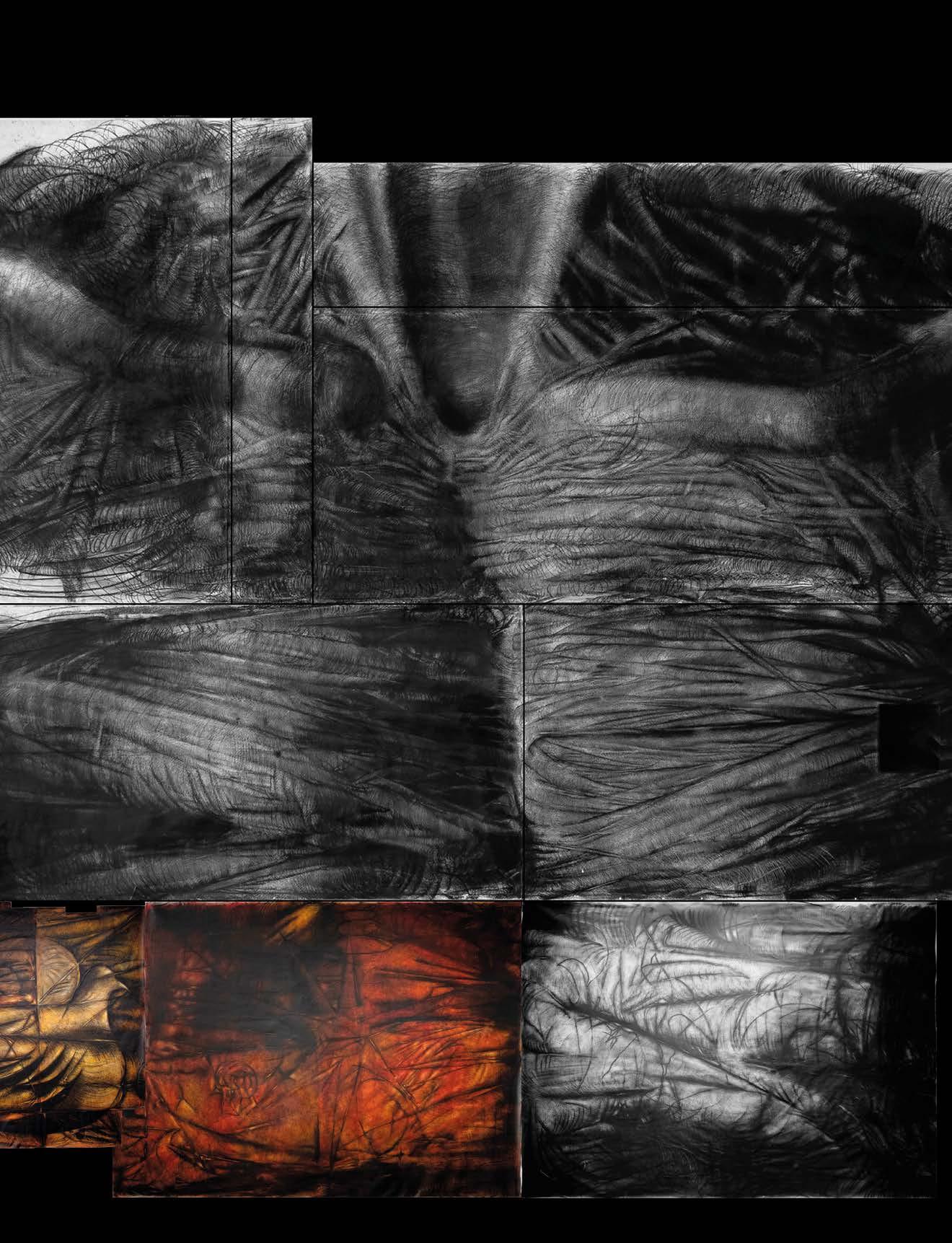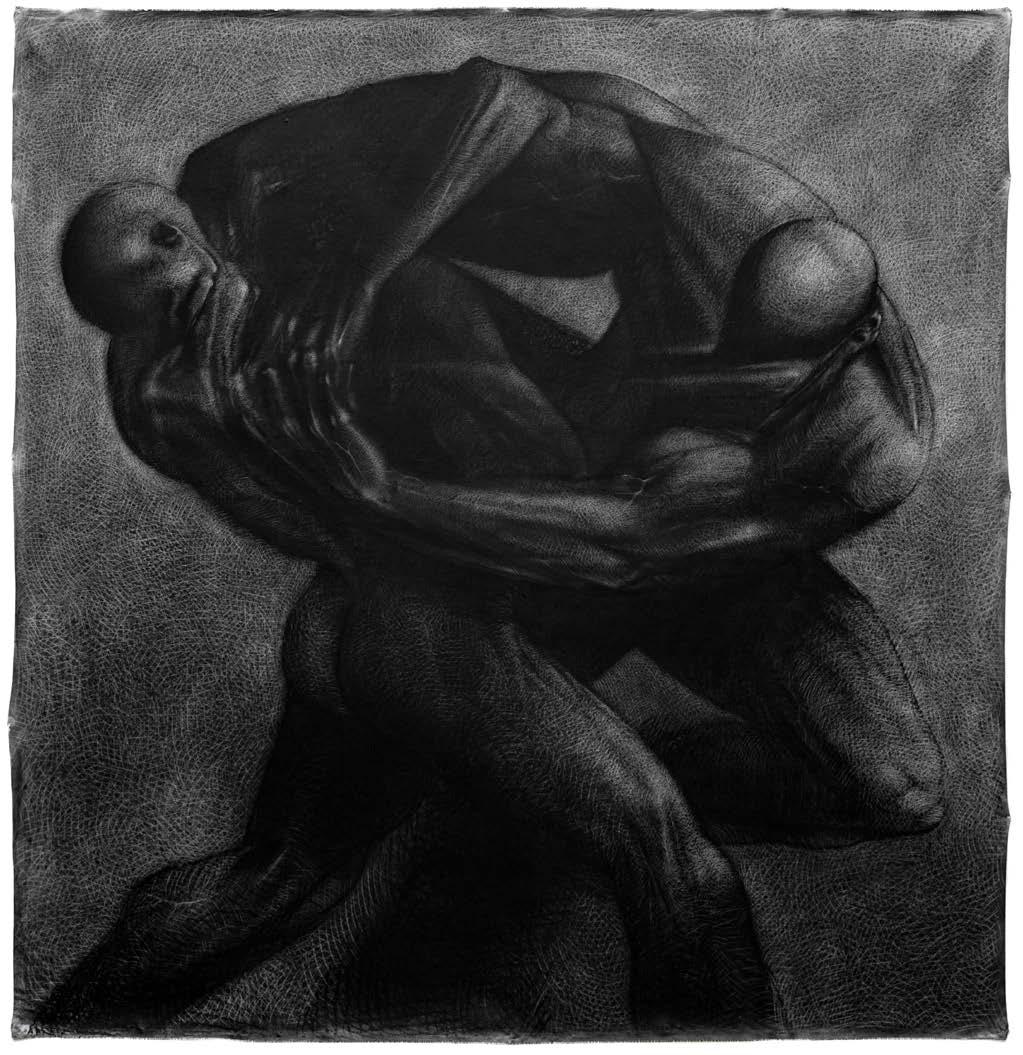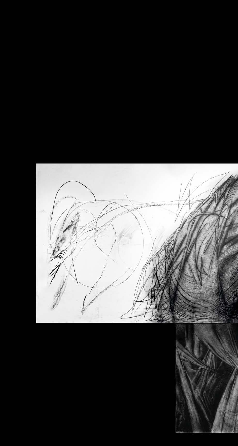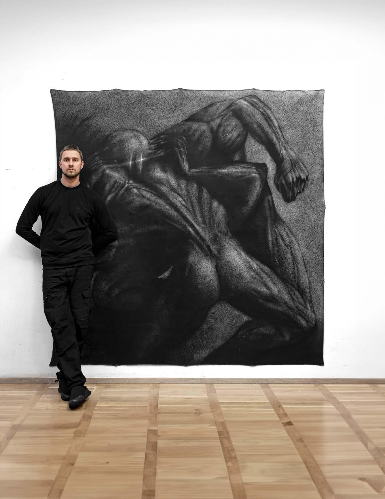 charcoal on paper, 330 × 200 cm. Supported by: Eugeniusz Geppert Academy of Fine Arts in Wroclaw. Place: Wroclaw, Poland. Work was part of Master Degree presentation in Lviv National Academy of Arts, Ukraine