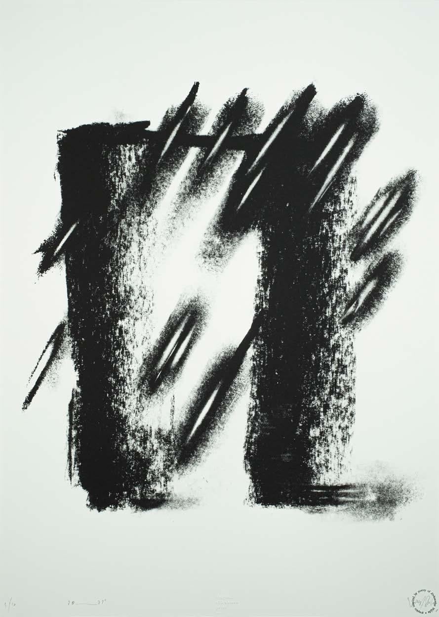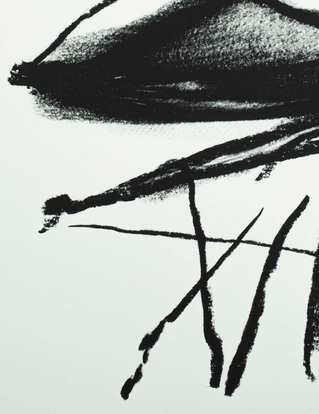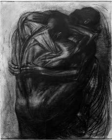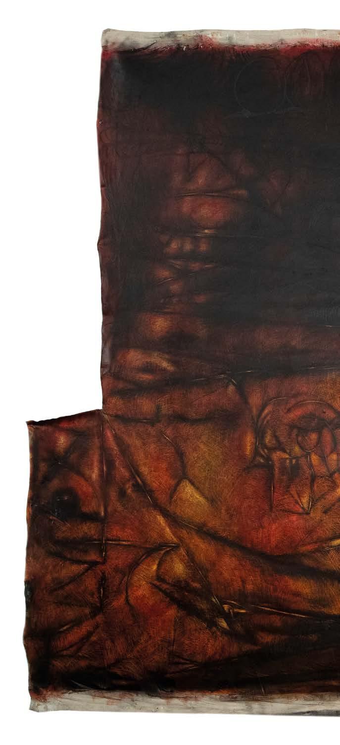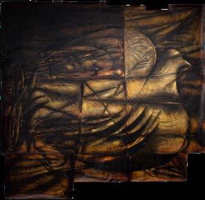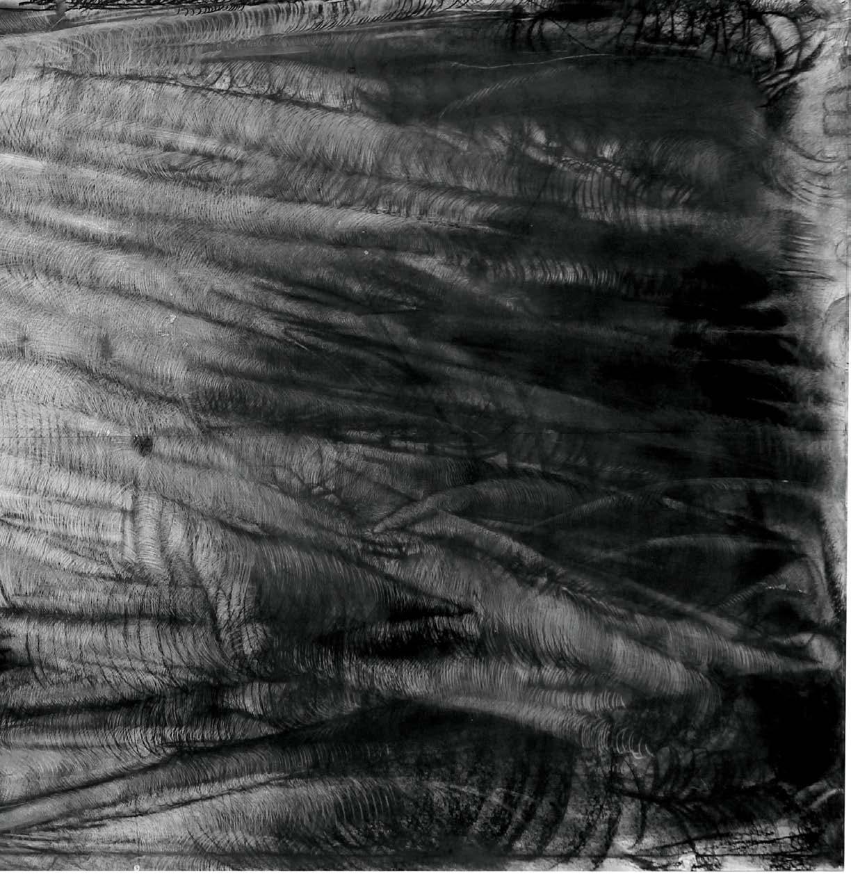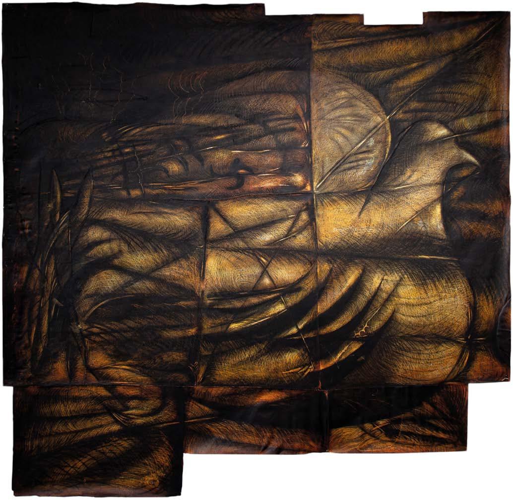Material: high surface density paper “280 - 320g”, linen and cotton canvas, varnish, charcoal. The work is secured with the fixative and varnish.