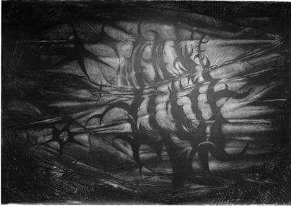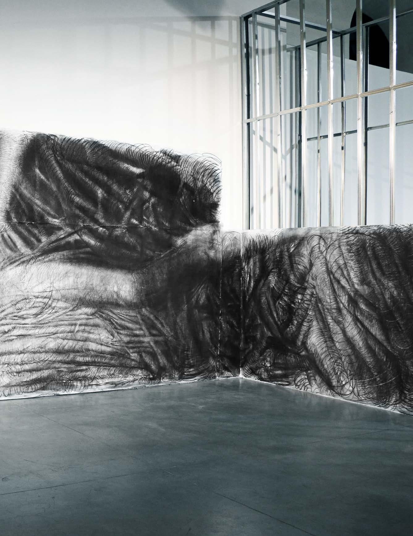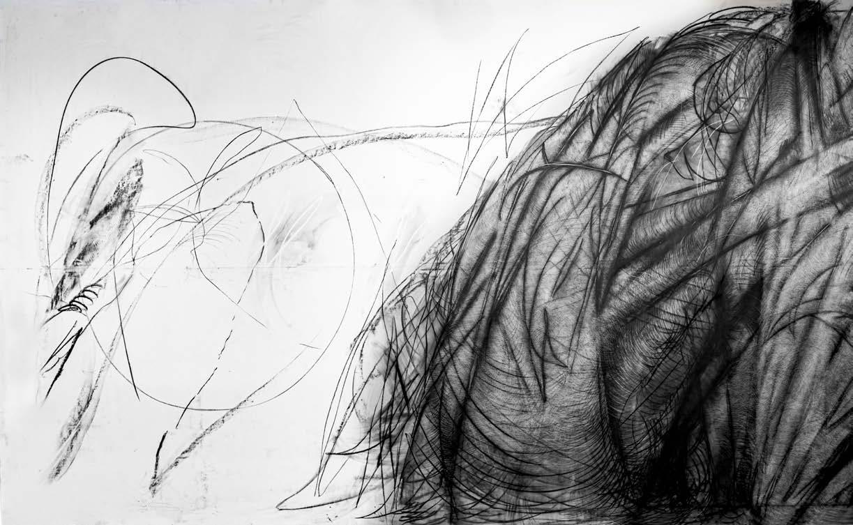 charcoal on paper, 200 × 400 cm. Supported by: Eugeniusz Geppert Academy of Fine Arts in Wroclaw. Place: Wroclaw, Poland. Work was part of Master Degree presentation in Eugeniusz Geppert Academy of Fine Arts, in Wroclaw, Poland.
