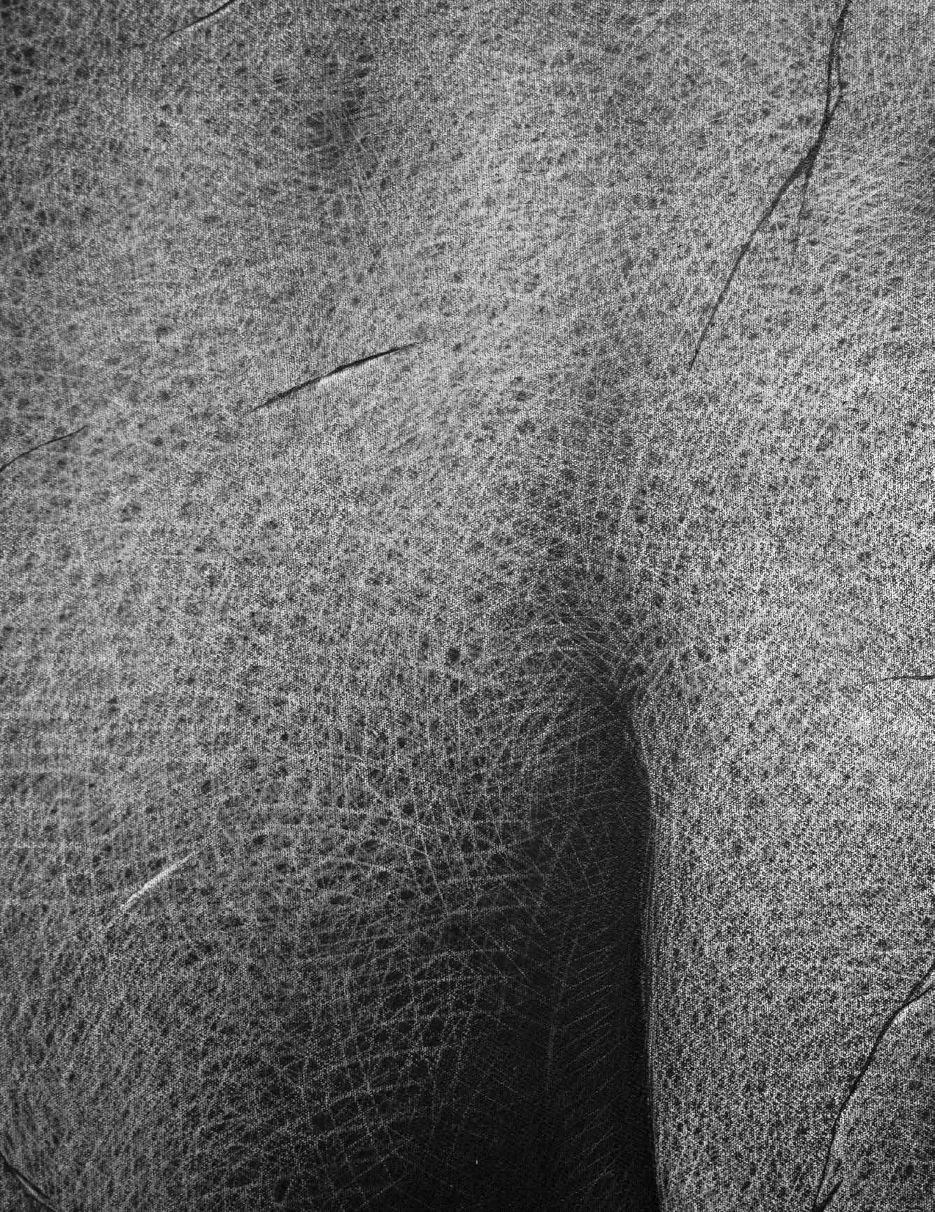 The MP series shows us fragments of a body, which undergoes endless transformation through experience. The project’s name itself speaks to this - encrypted letters veil several titles that the artist shuffles depending on his own life and creative path: journeys, residencies, and encounters. “I took fragments of the human body as a basis, which I decided to enlarge into unrecognizable forms and sizes that begin transitioning into abstraction,” he explains. Abstraction and figurative form another contrast created through skillful scaling from “micro-” to “macro-” and driving the way we perceive the image. Initially, a fragment of muscle tissue seems like an endless interweaving of stretched fibers, and then these fragments come together into the chest of a gigantic being.