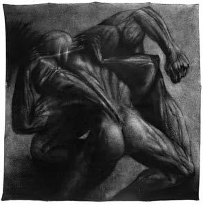As noted by researcher Ana Carden-Coyne, the depiction of muscles in art and philosophy has always provided “physical expression of the idea of unity and integrity, simultaneously revealing the character of the soul.” After the First World War, “muscles became a symbol of the rehabilitation of the whole person, even one who had lost a limb...”¹. It’s hard not to perceive Savchenko’s distinctive charcoal texture beyond this context - the bodily covering is seen as a reflection of the spirit, its weakness or resilience.