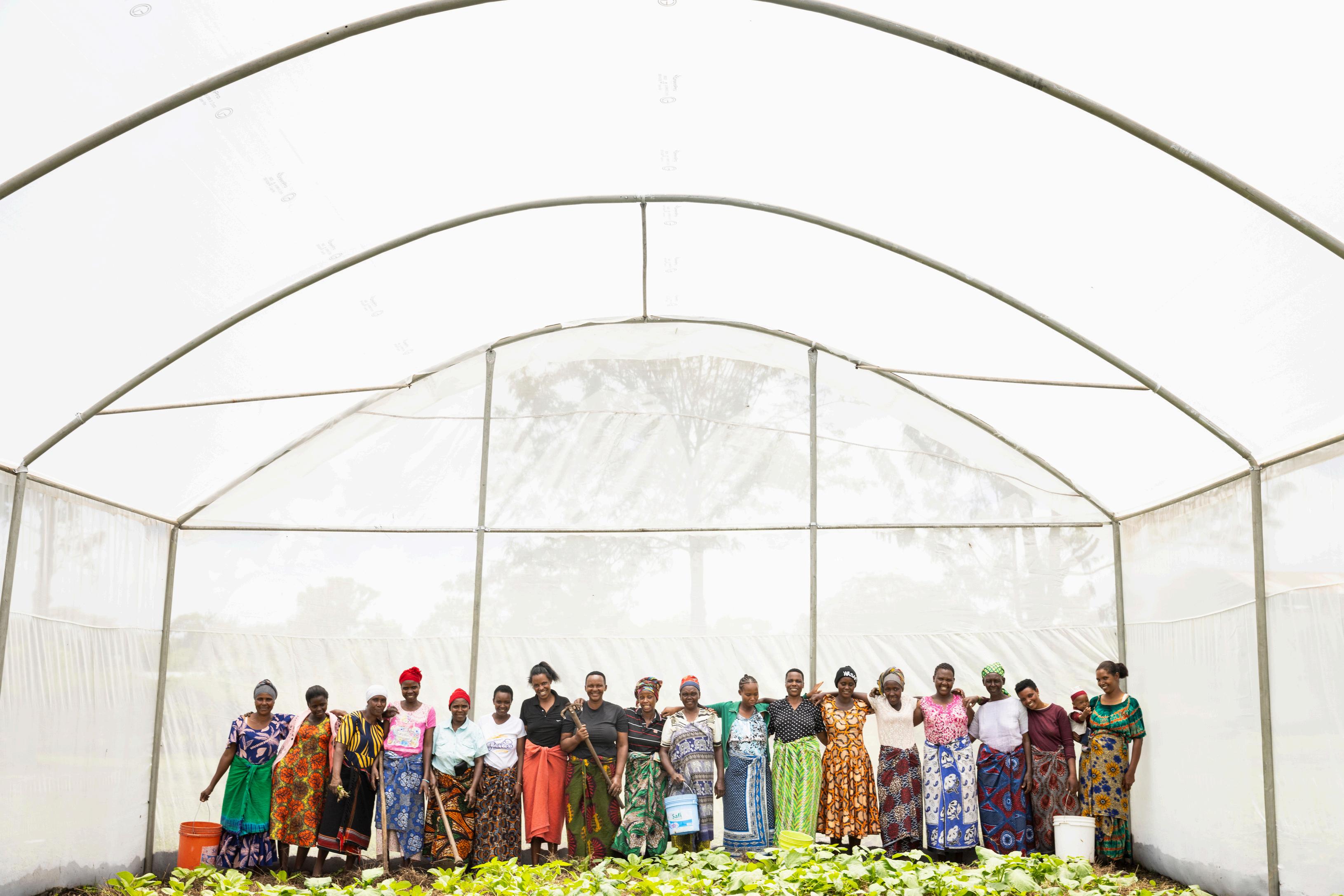 Eighteen women work in Nsengoni’s greenhouse, growing nourishing leafy greens They sing as they tend to the crops, nurturing the friendships they’ve fostered. Improved planting methods, composting, and trench irrigation are also yielding better harvests in their home gardens.