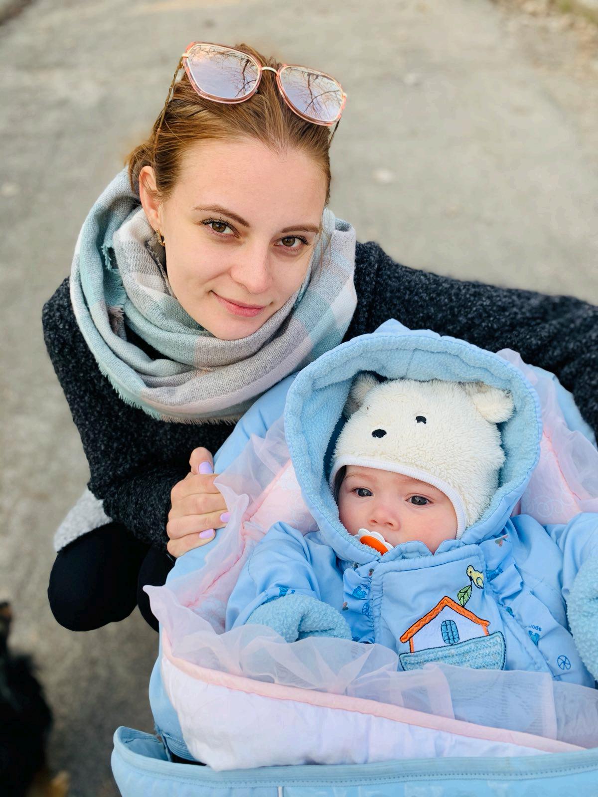 Kamila, 26, with little Adelina, 5 months old (wife of a defender)