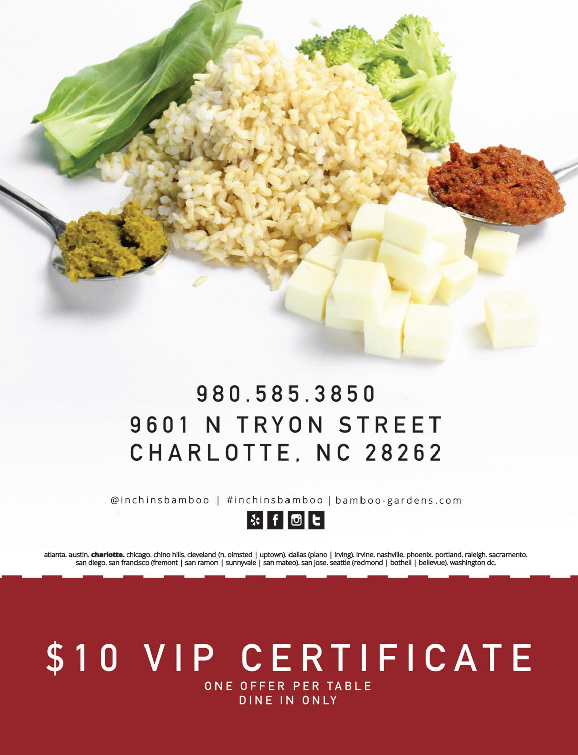3. VIP CERTIFICATES - Are not redeemable for cash. Dine in only. Tax, alcohol and gratuity are not included. Certificates are subject to rules of use and are not valid with any other offers.