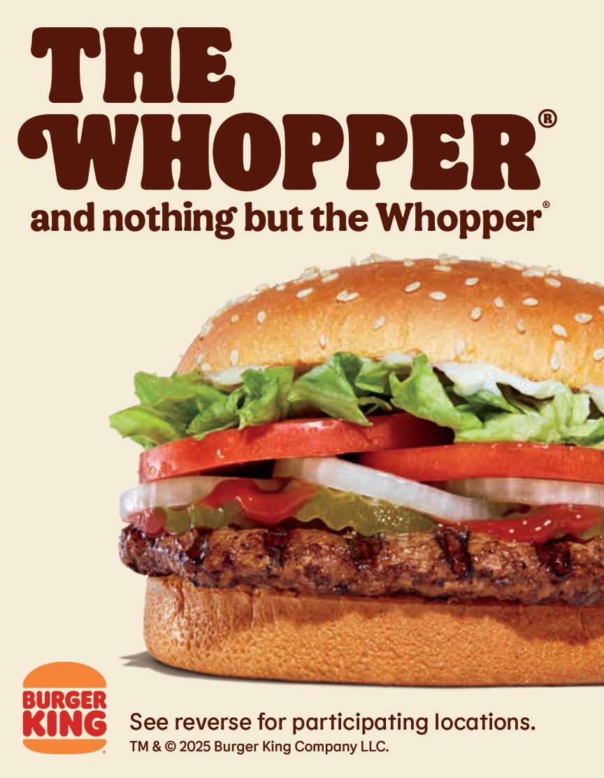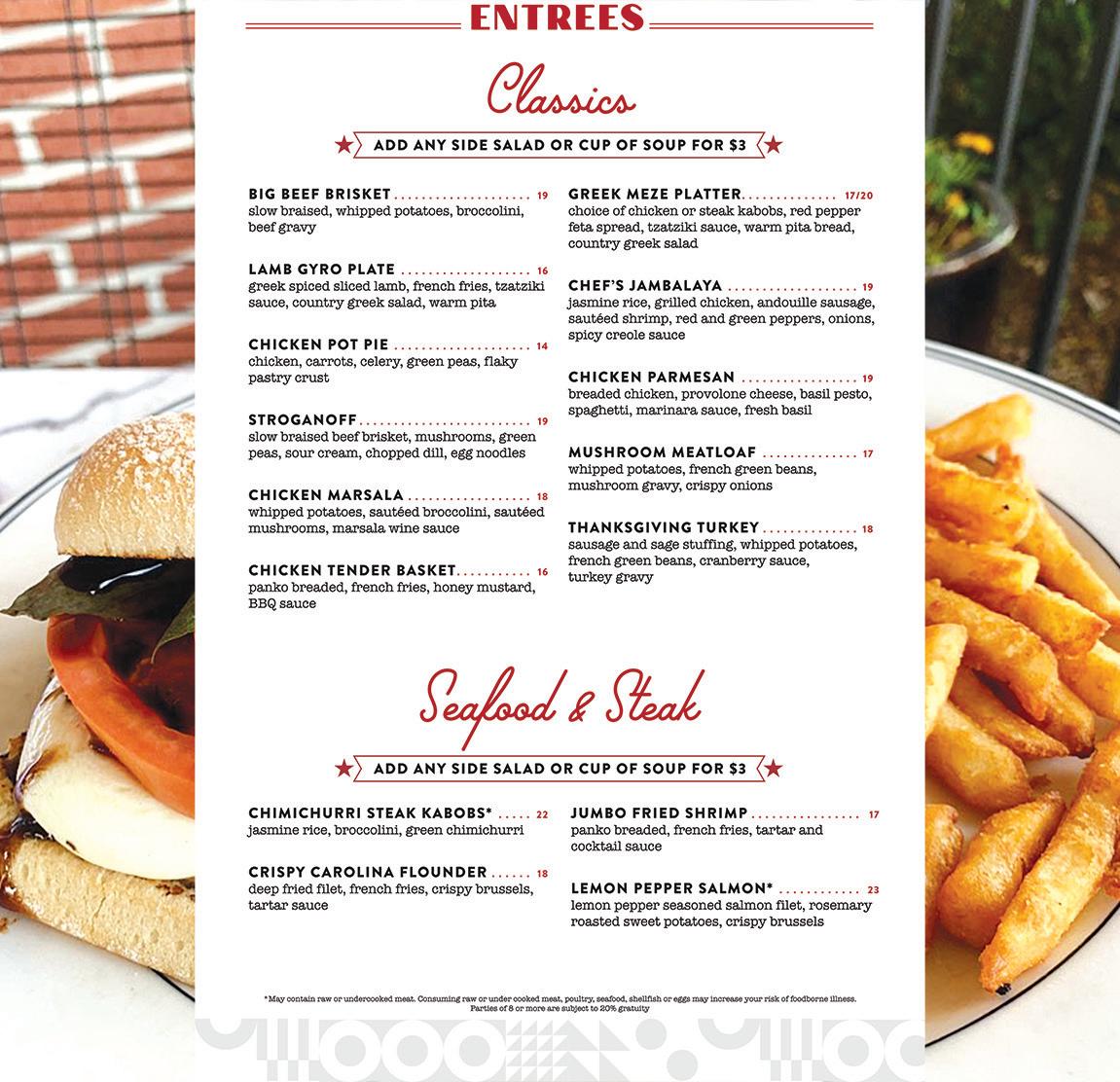 MENU ITEM WITH THE PURCHASE OF A MENU ITEM OF EQUAL OR GREATER VALUE. Up to $10.00 value.