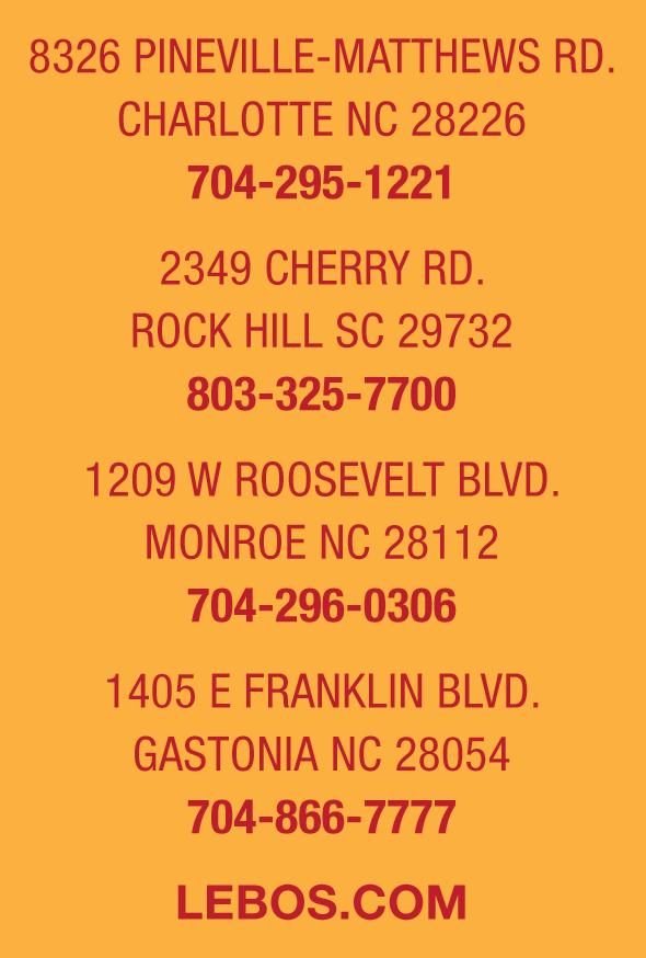 1820 Sardis Rd. N., Matthews, NC 704-841-1195 155 Northcross Ln., Statesville, NC 704-881-0480 Thank you for supporting