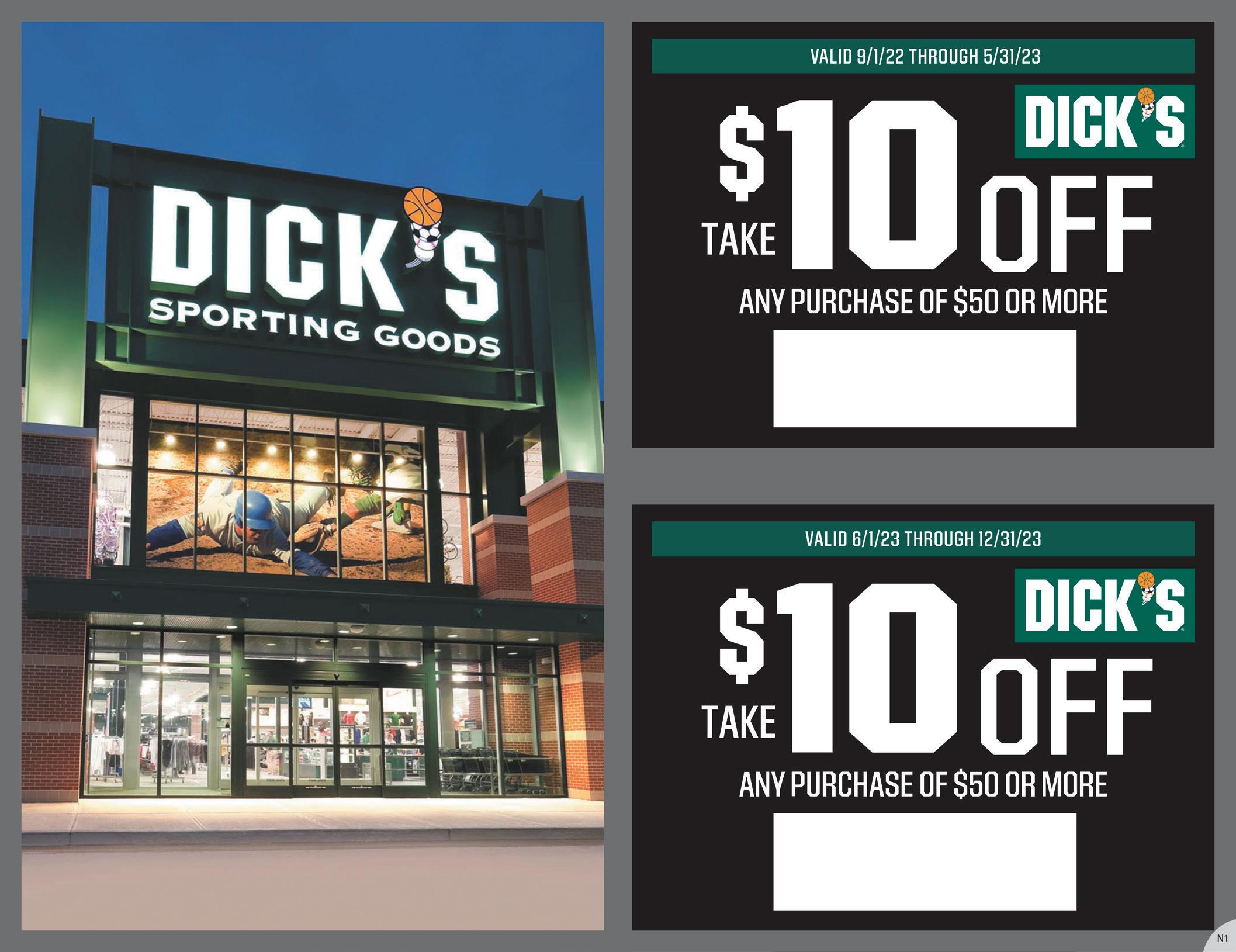 *Limit one coupon per customer. Valid on in-store purchase only. Excludes: taxes, prior purchases, gift cards, extended warranties, such as the No Sweat Protection Plan, licenses, store credit, services or excluded items detailed in-store or at DICKS.com/Exclusions. Cannot be combined with other o ers. No reproductions or rain checks accepted. O er not accepted at DICK’S Warehouse