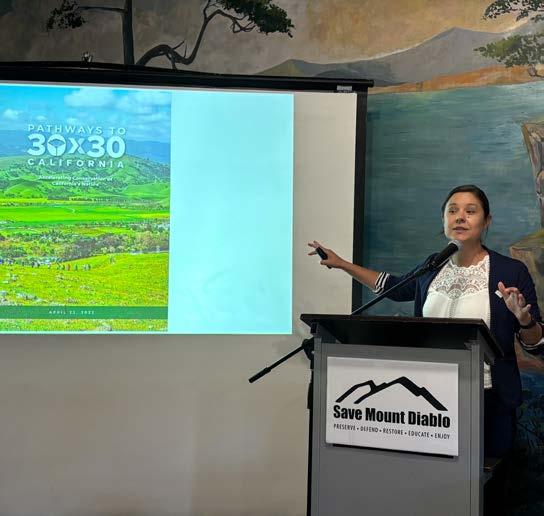 In June, we spearheaded, with help from our good partners, a successful firstever Diablo Range Convening, with more than 150 people registered, representing over 60 conservation organizations; tribes; and federal, state, and local agencies, to build awareness and collaborations for Mount Diablo and the mountain range that sustains it. It was held in San Benito County, which has the largest stretch of the range. This strategic gathering was a success, and we look forward to putting on next year’s convening in the Mount Diablo area.
