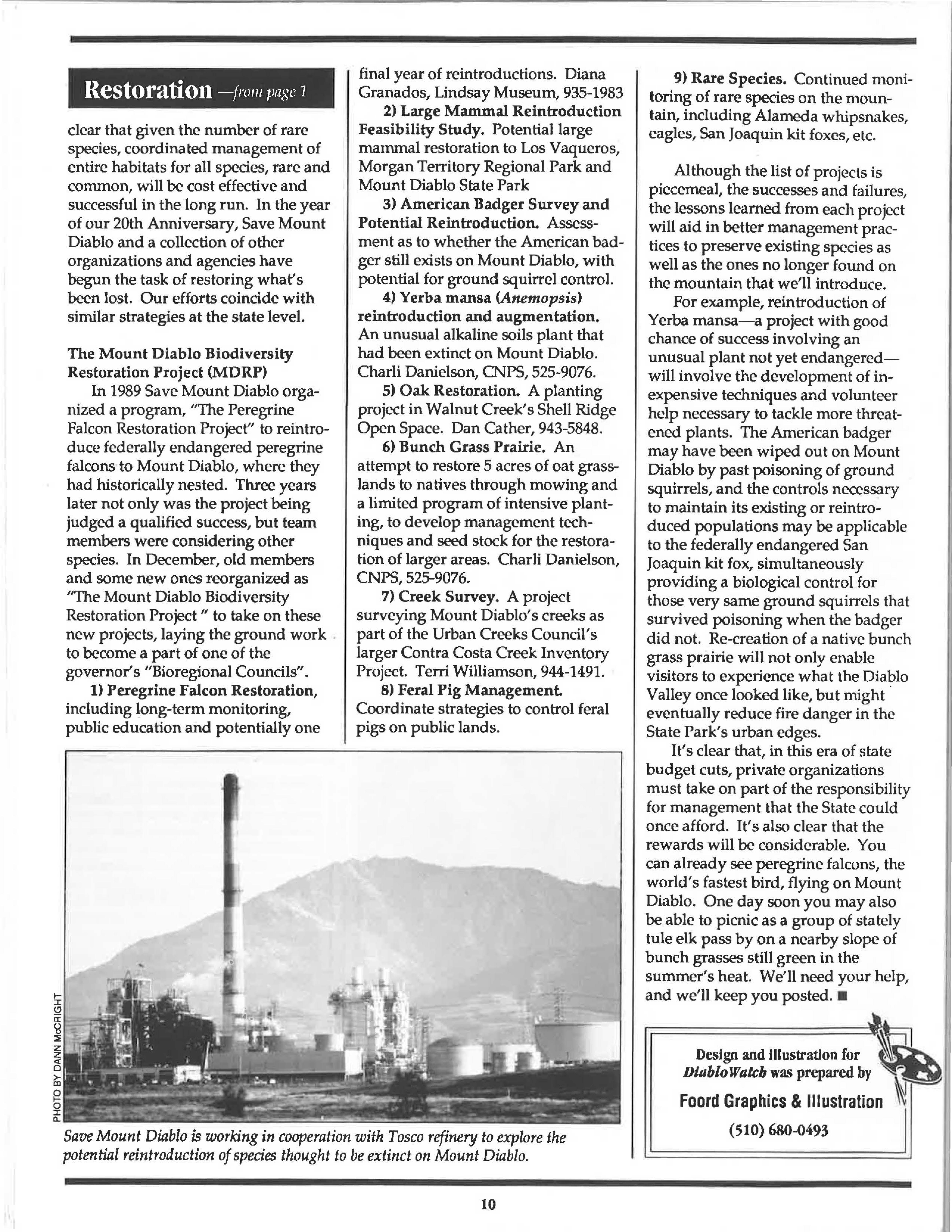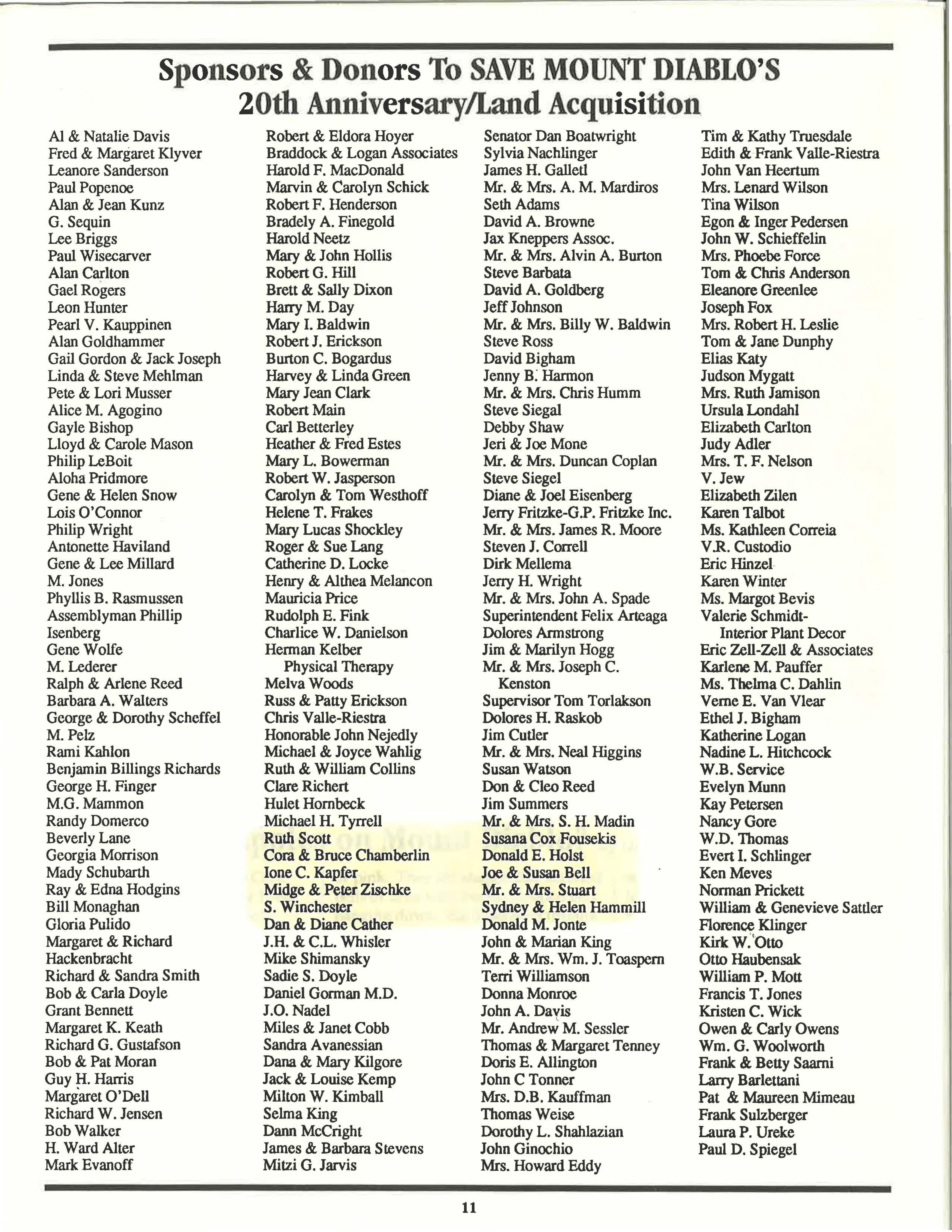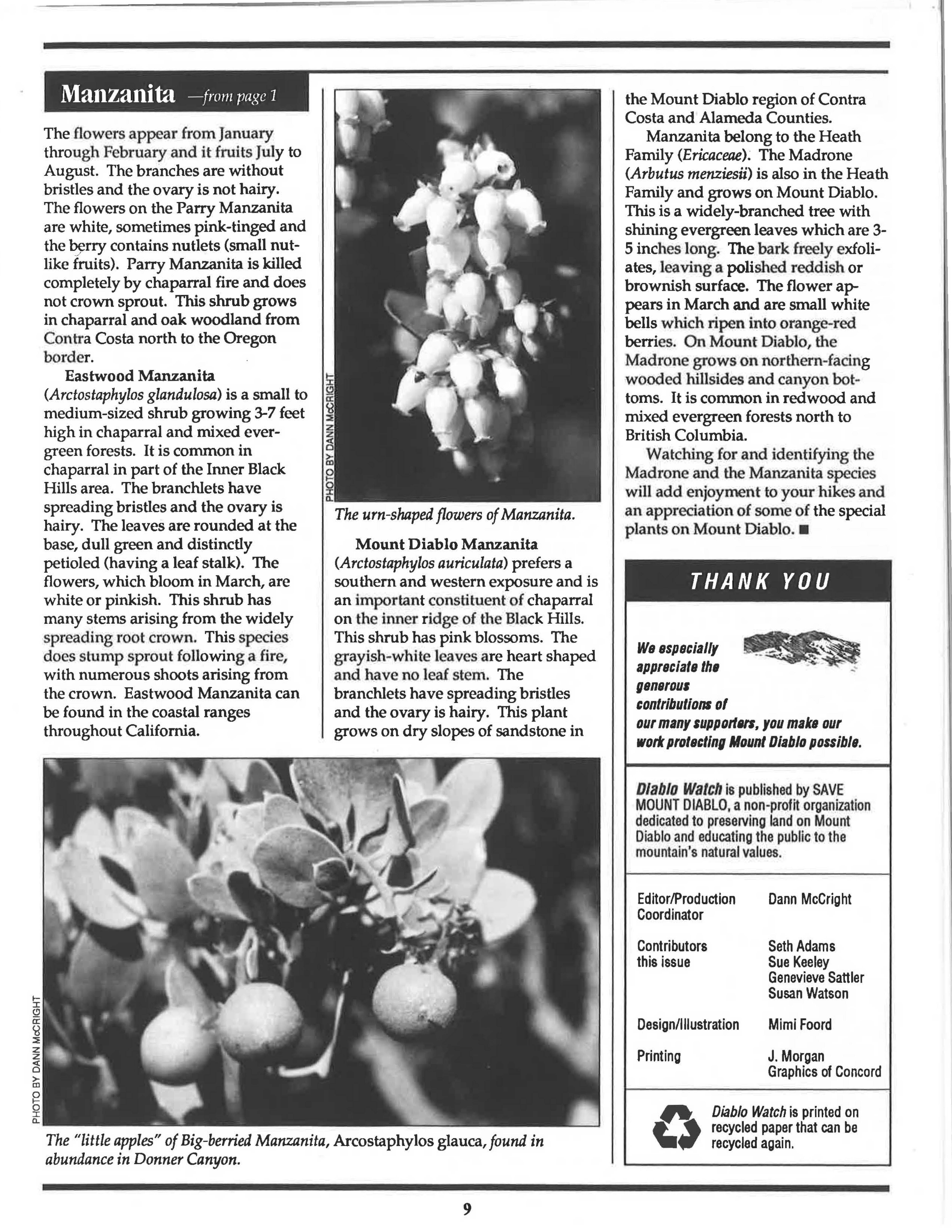 Problems mean opportunities, new ways of finding money, of helping one another, and of helping to preserve and protect our mountain. We pledge to you that we will address this new year with its new circumstances in the spirit of the "can-do" that has brought Save Mount Diablo through twenty years of effective work. Together, we can all make a difference.