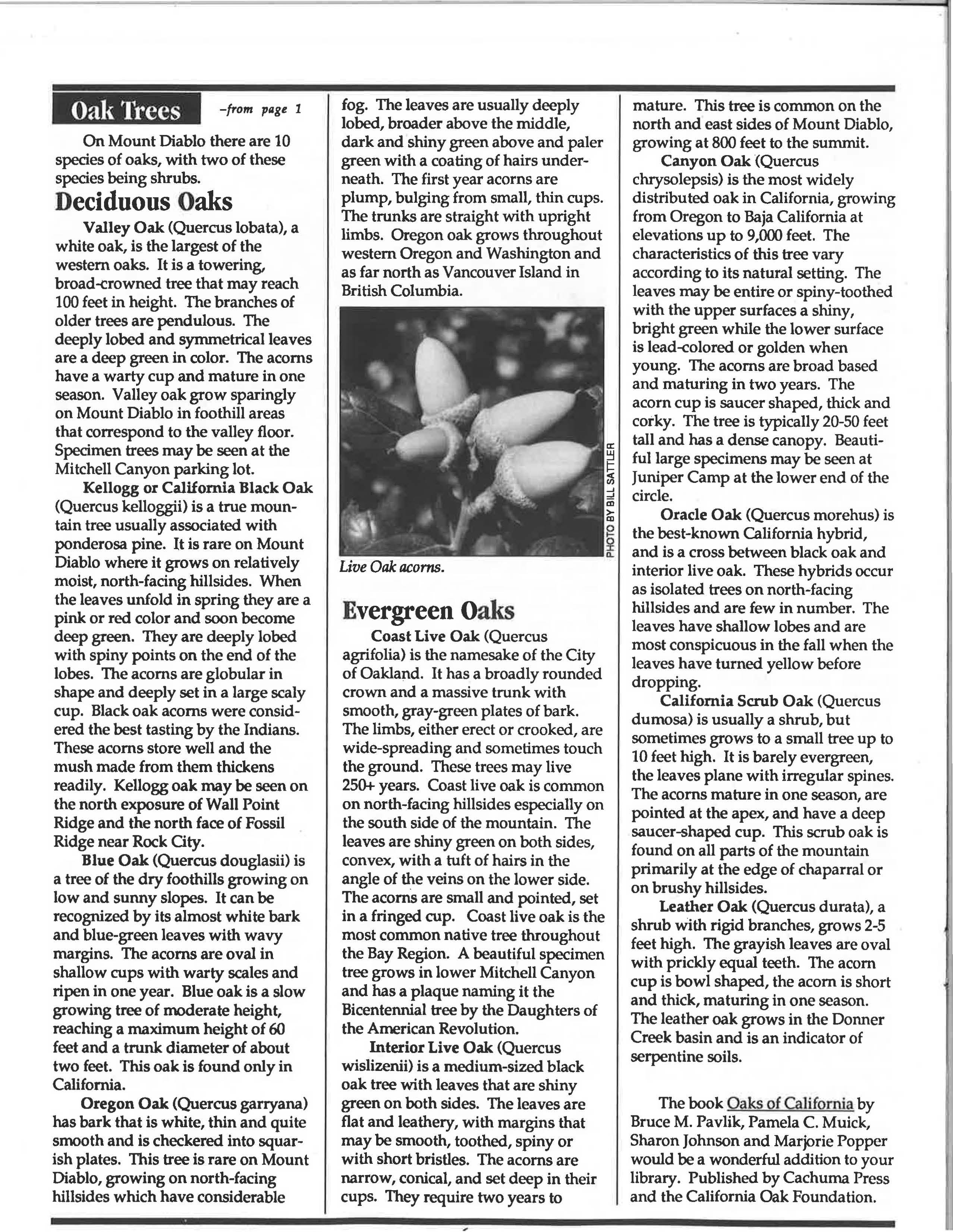 On Mount Diablo there are 10 species of oaks, with two of these species being shrubs.