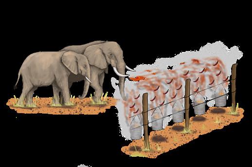 Le son explosif du dispositif et la poudre de piment irritante se combinent pour former un moyen puissant de dissuasion contre les éléphants.