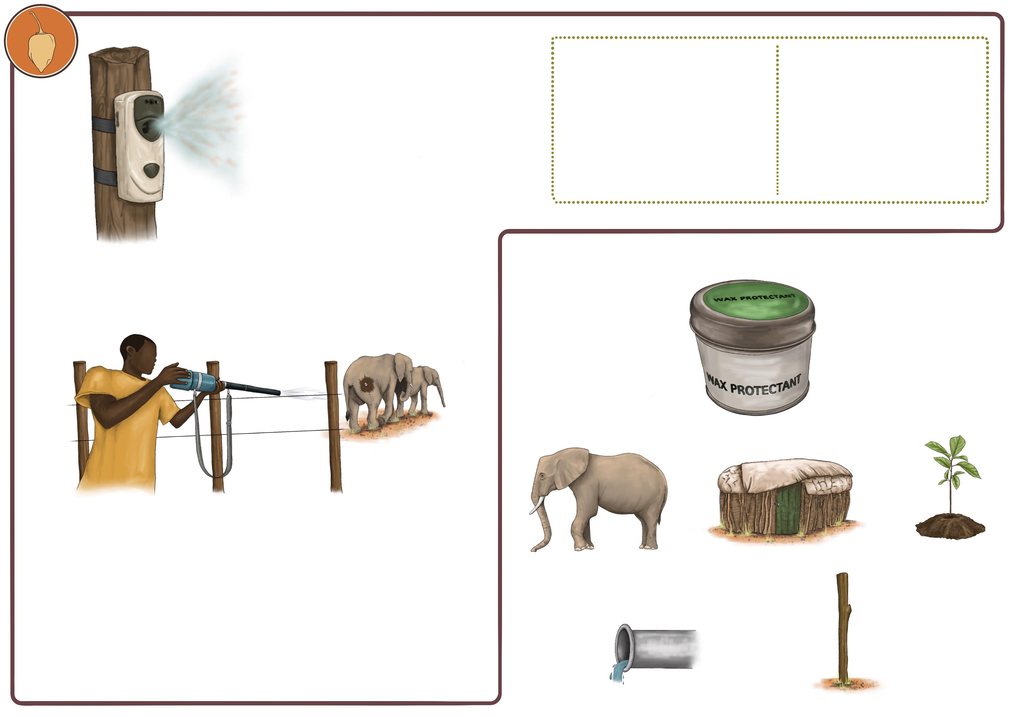 Crédit: Collaborative Manual by Chang’a et al. 2015. Chilli fences keep elephants out of crops! How to make and support chilli fences.