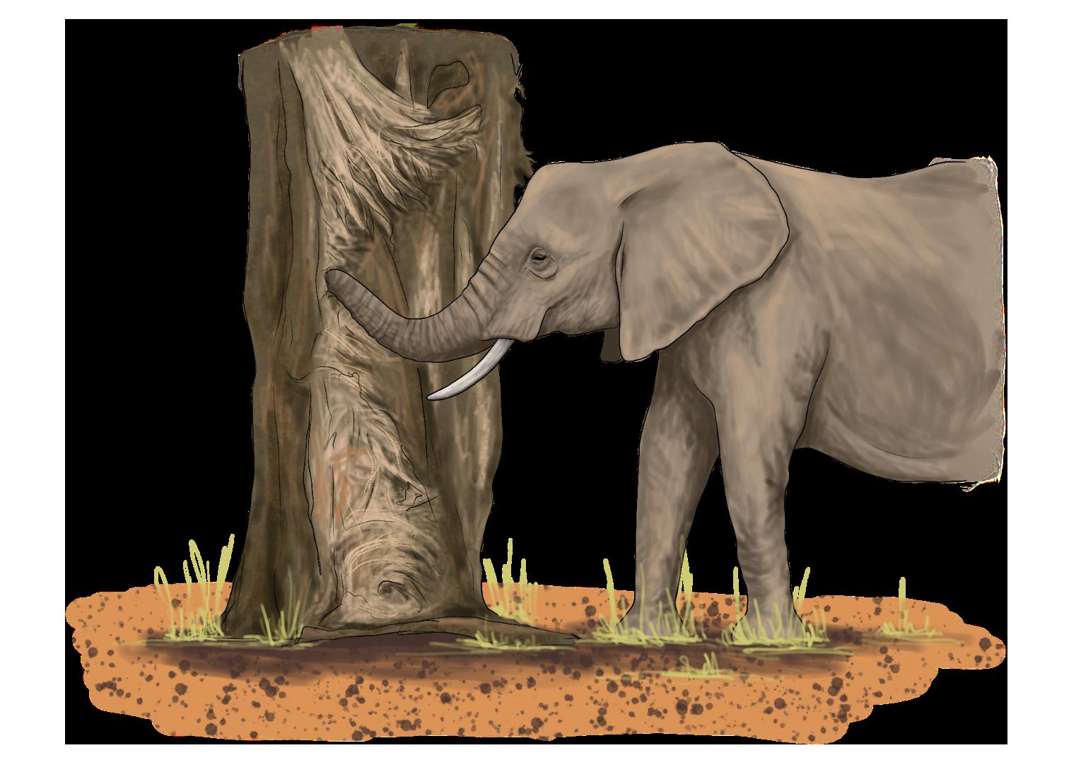 Elephants need to forage on trees and leaves for nutrition, but they can also permanently damage important large treesthey strip the bark, break branches and uproot the trees.