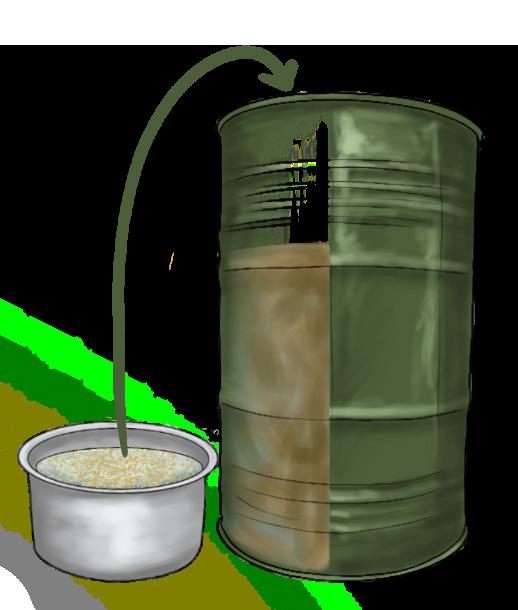 Put 100kg of elephant manure in a clean 200 litre drum.