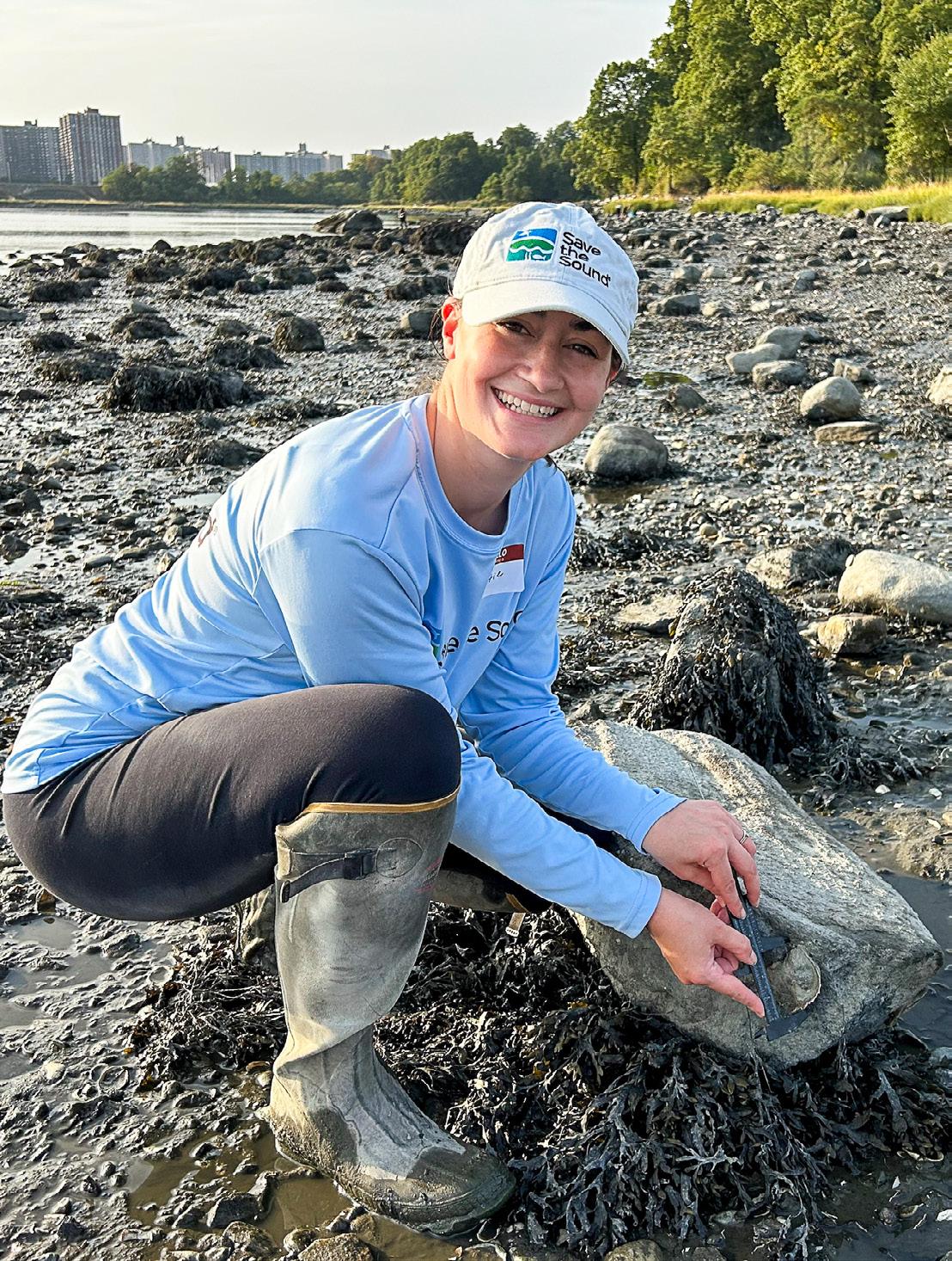 Katie Friedman conducting a wild oyster survey at Turtle Cove in the Bronx, New York.