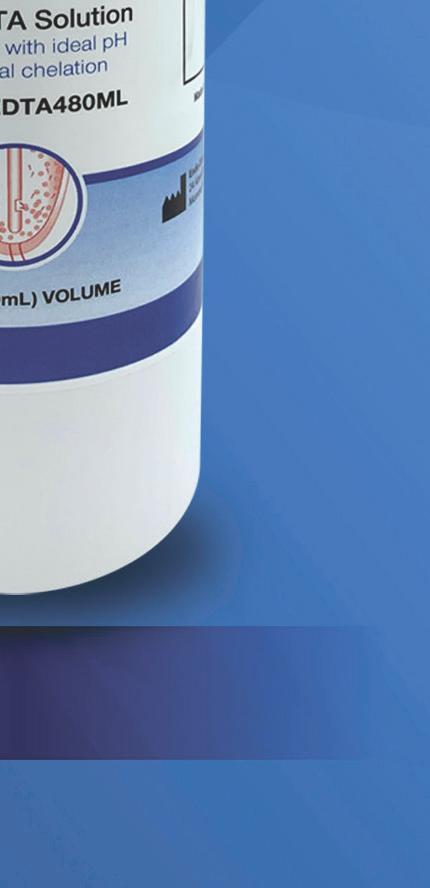 Provides outstanding Cleaning, Debridement and Disinfection by removing infected tissue, biofilm and smear layer killing up to 99% of bacteria commonly found in the root canals. (1,2,3,4) This should give you the confidence you need to treat even the most complex anatomies.